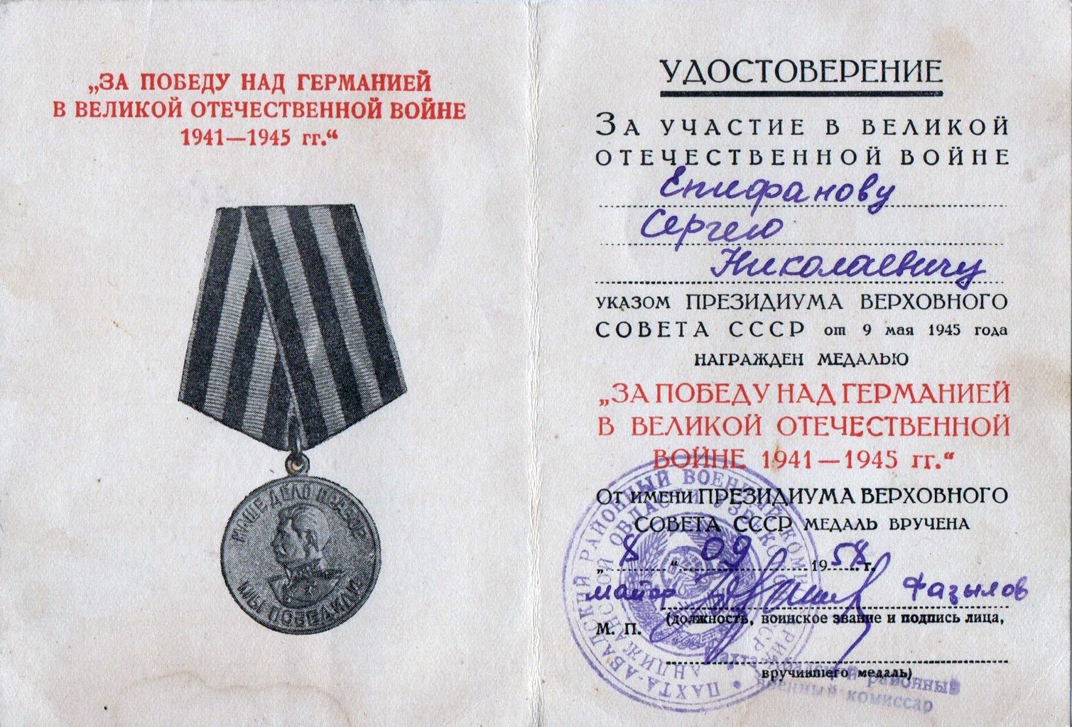 Только спустя год, в 1946 году, Сергей Епифанов смог вернуться домой. Клеймо попавшего в плен еще долго лежало на нем. Однако на основании Указа Президиума Верховного Совета СССР от 08.09.1958 года Сергей Николаевич Епифанов был награжден медалью «За Победу над Германией в Великой Отечественной войне 1941-1945 гг.», позже знаком «25 лет Победы в Великой Отечественной войне».