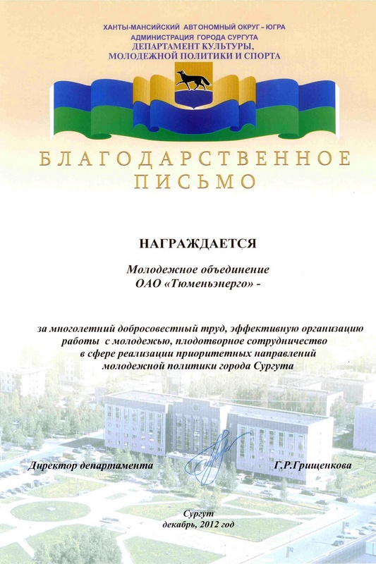 Молодежь «Тюменьэнерго» отмечена администрацией Сургута