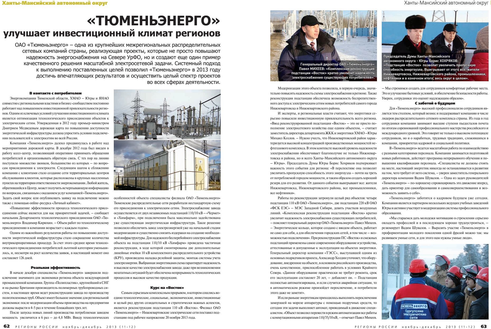 Публикация в издании "Регионы России", декабрь 2013 г.