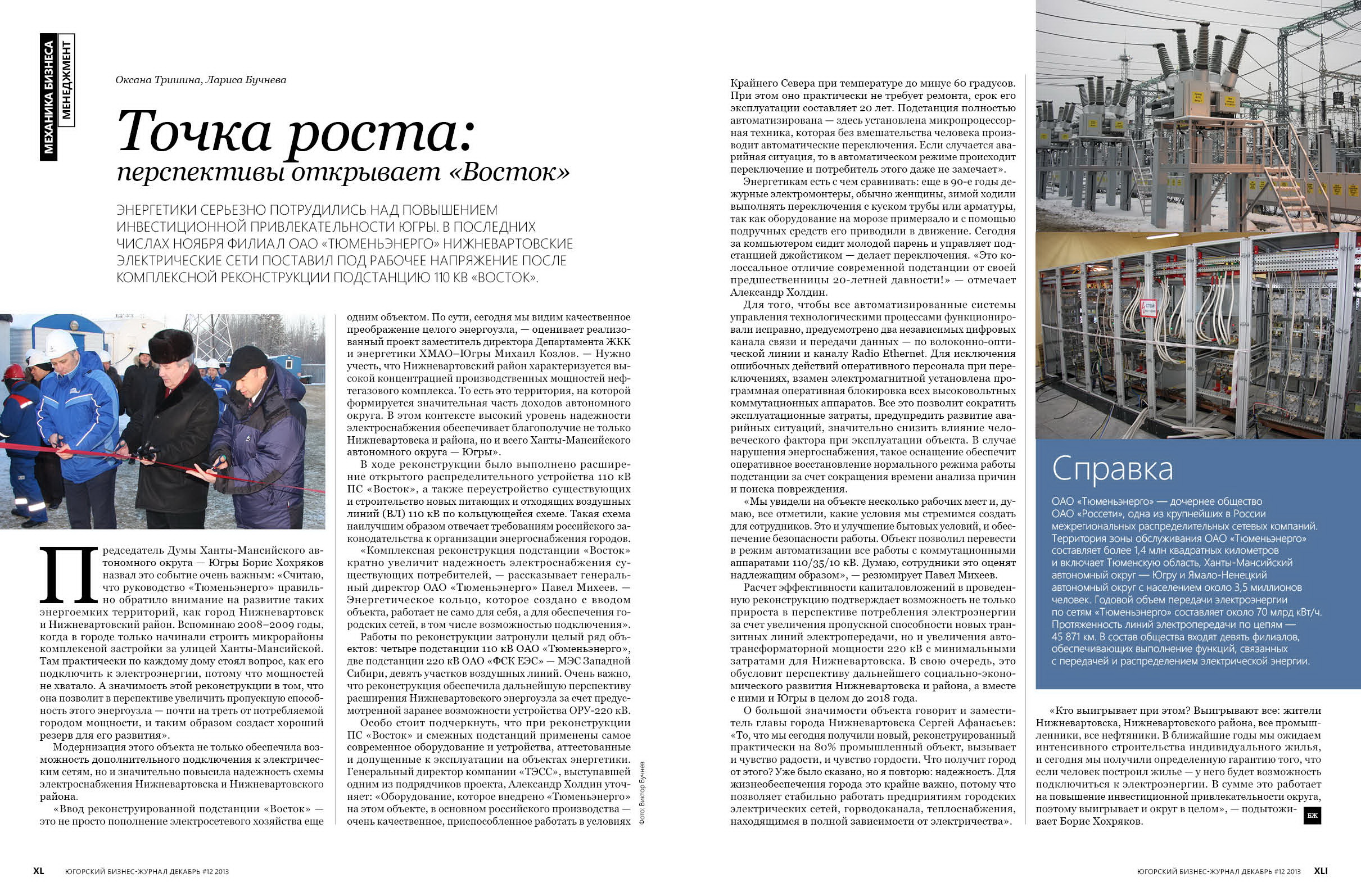 Публикация в издании "Югорский бизнес журнал", декабрь 2013 г.