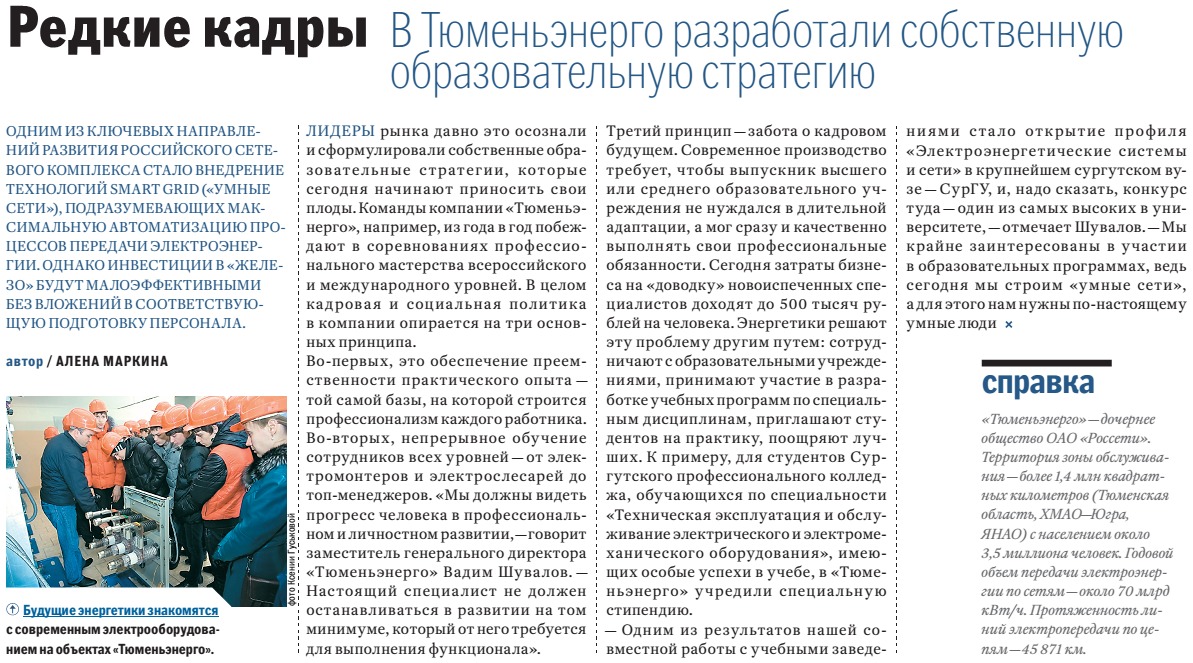 В Тюменьэнерго разработали собственную образовательную стратегию