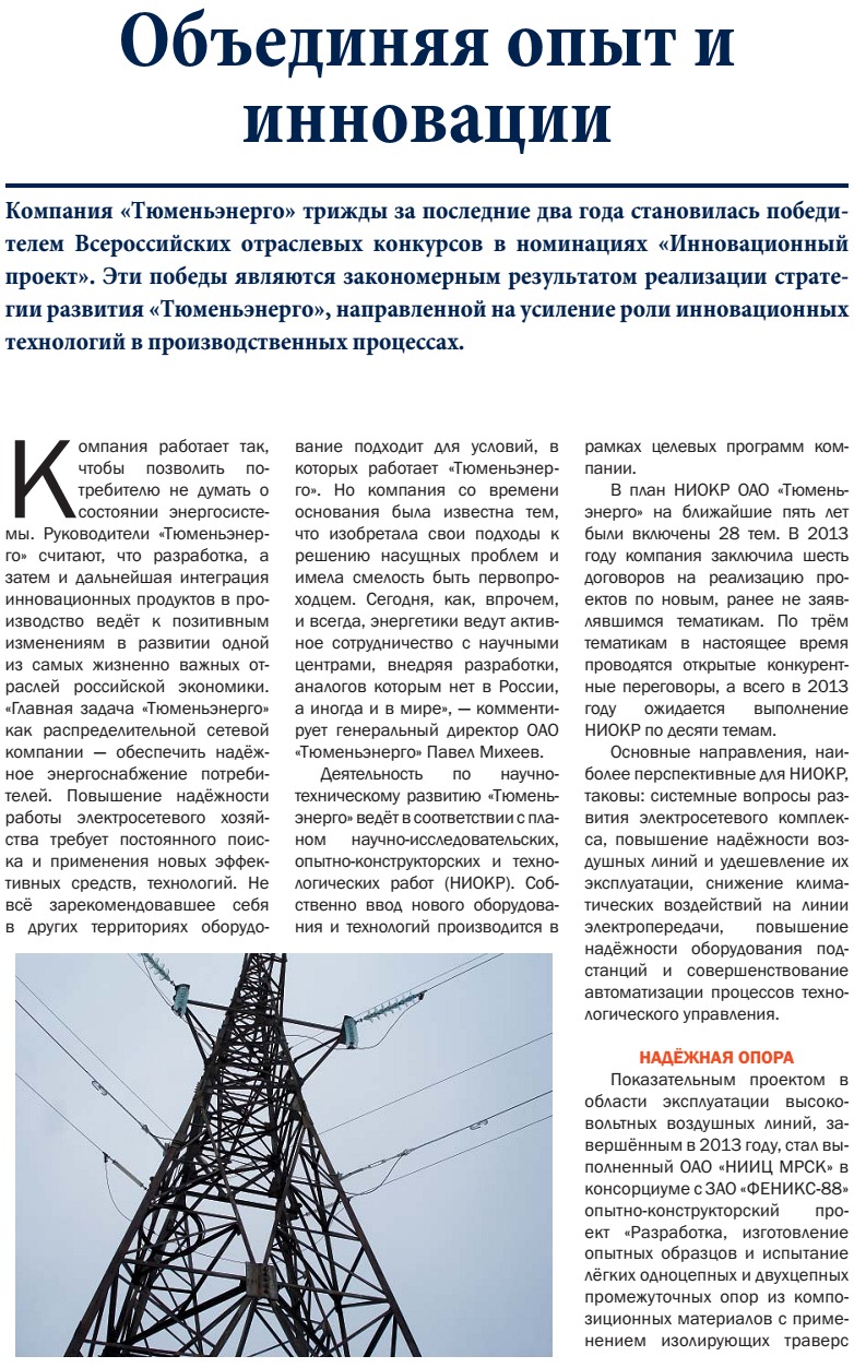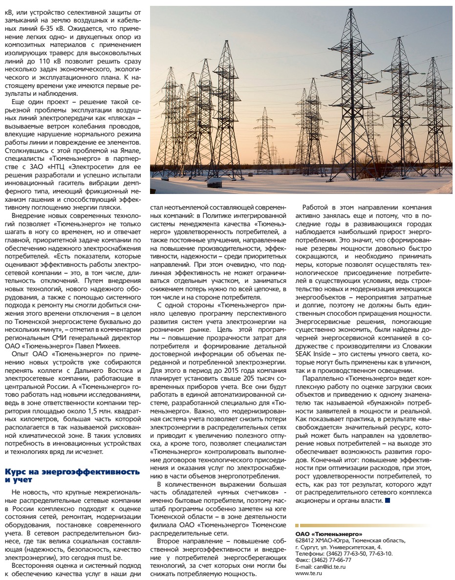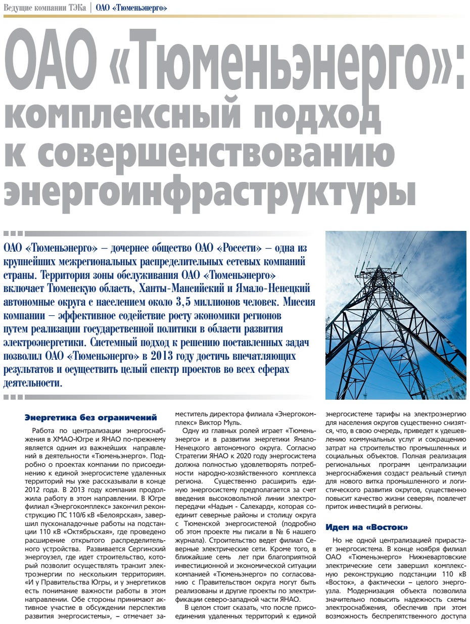 ОАО "Тюменьэнерго": комплексный подход к совершенствованию энергоинфраструктуры
