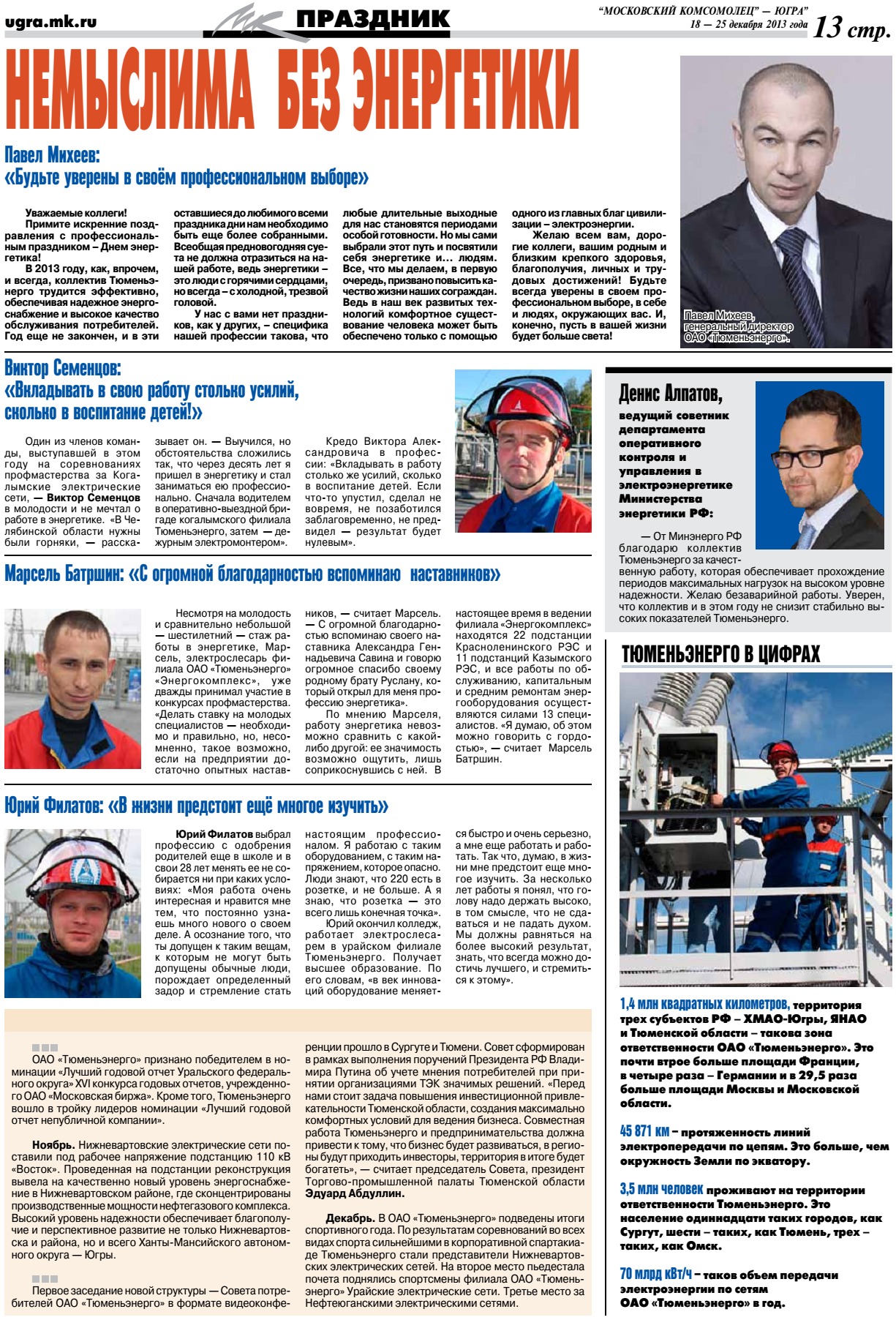 Публикация в издании "МК-Югра", декабрь 2013 г.