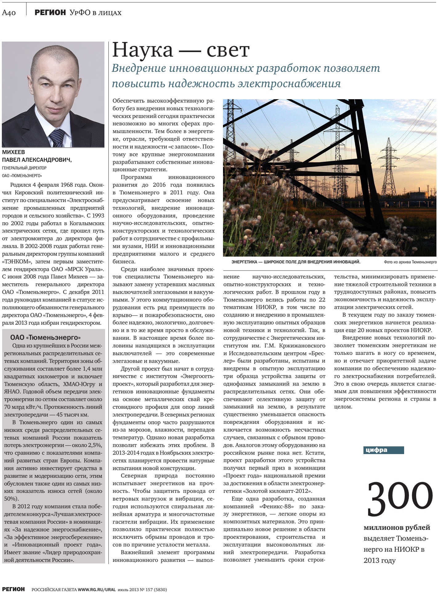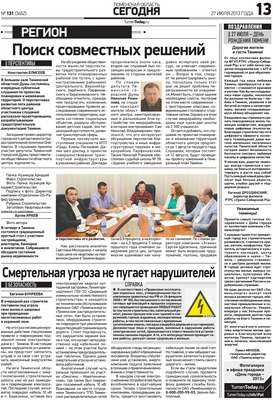 Публикация в издании "Тюменская область сегодня" от 27 июля 2013 г.