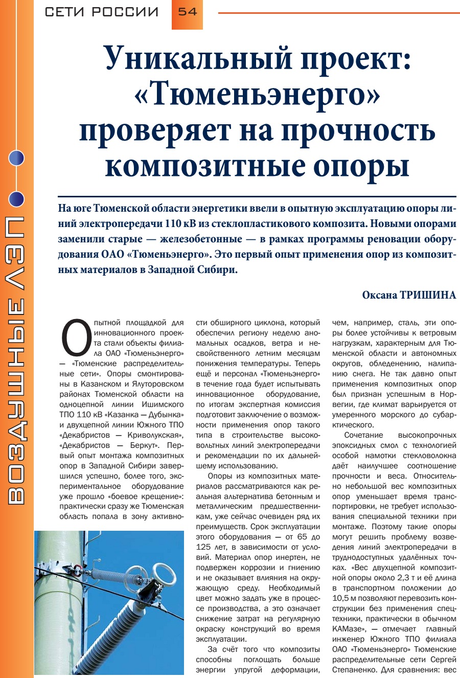 Уникальный проект: "Тюменьэнерго" проверяет на прочность композитные опоры