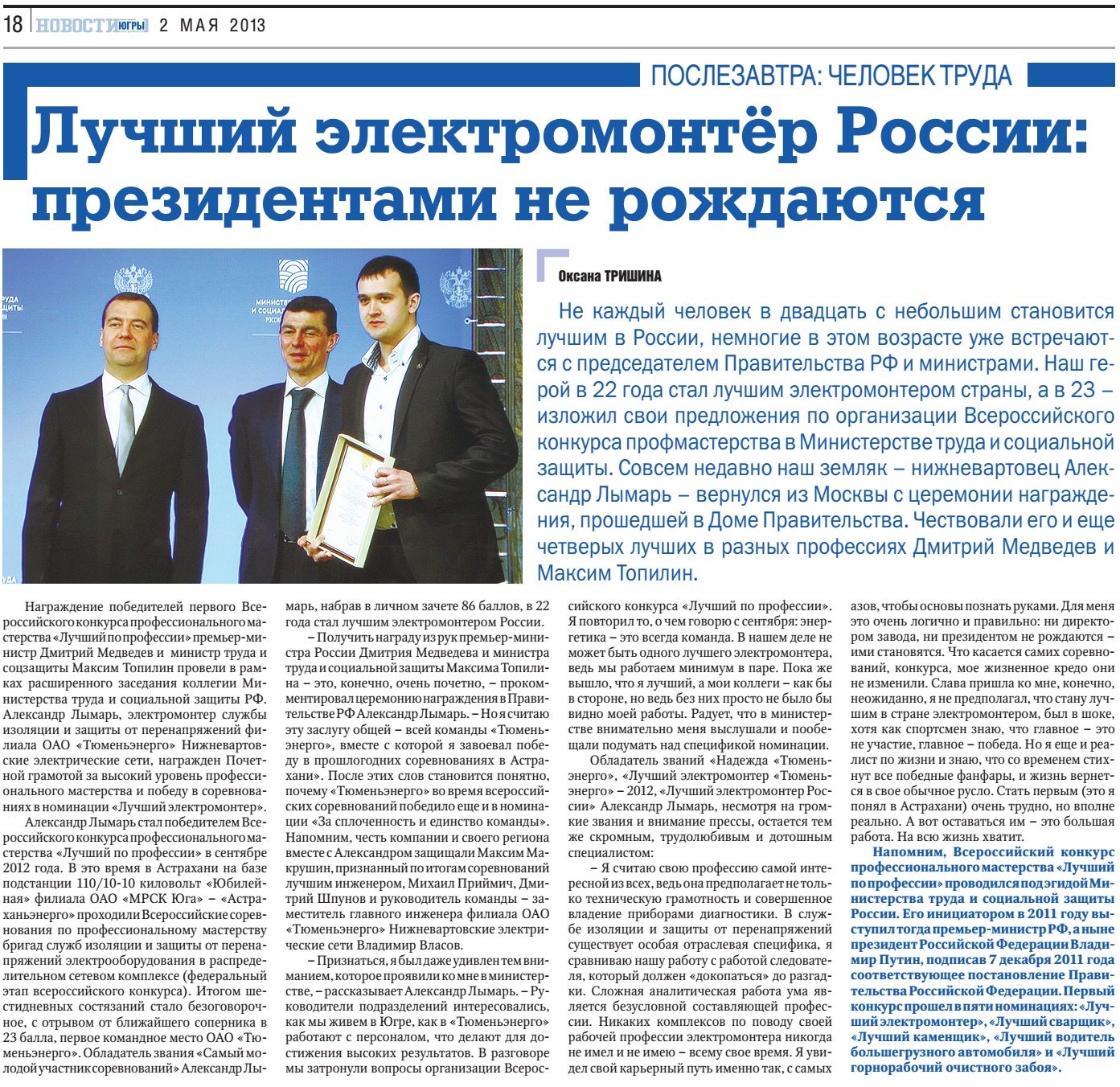 Публикация в издании "Новости Югры" от 2 мая 2013 г.