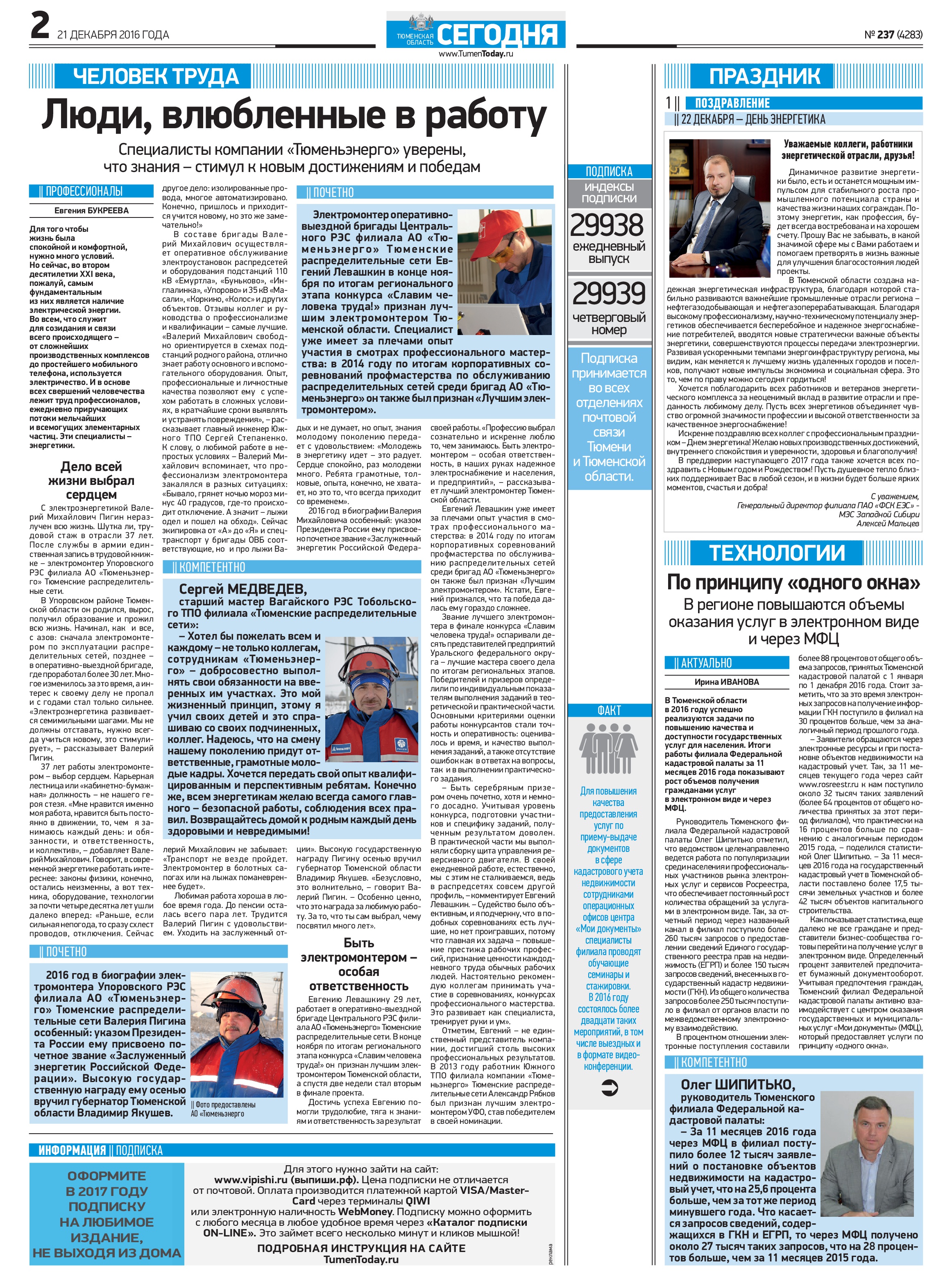 Публикация в издании "Тюменская область сегодня" от 21 декабря 2016 г.