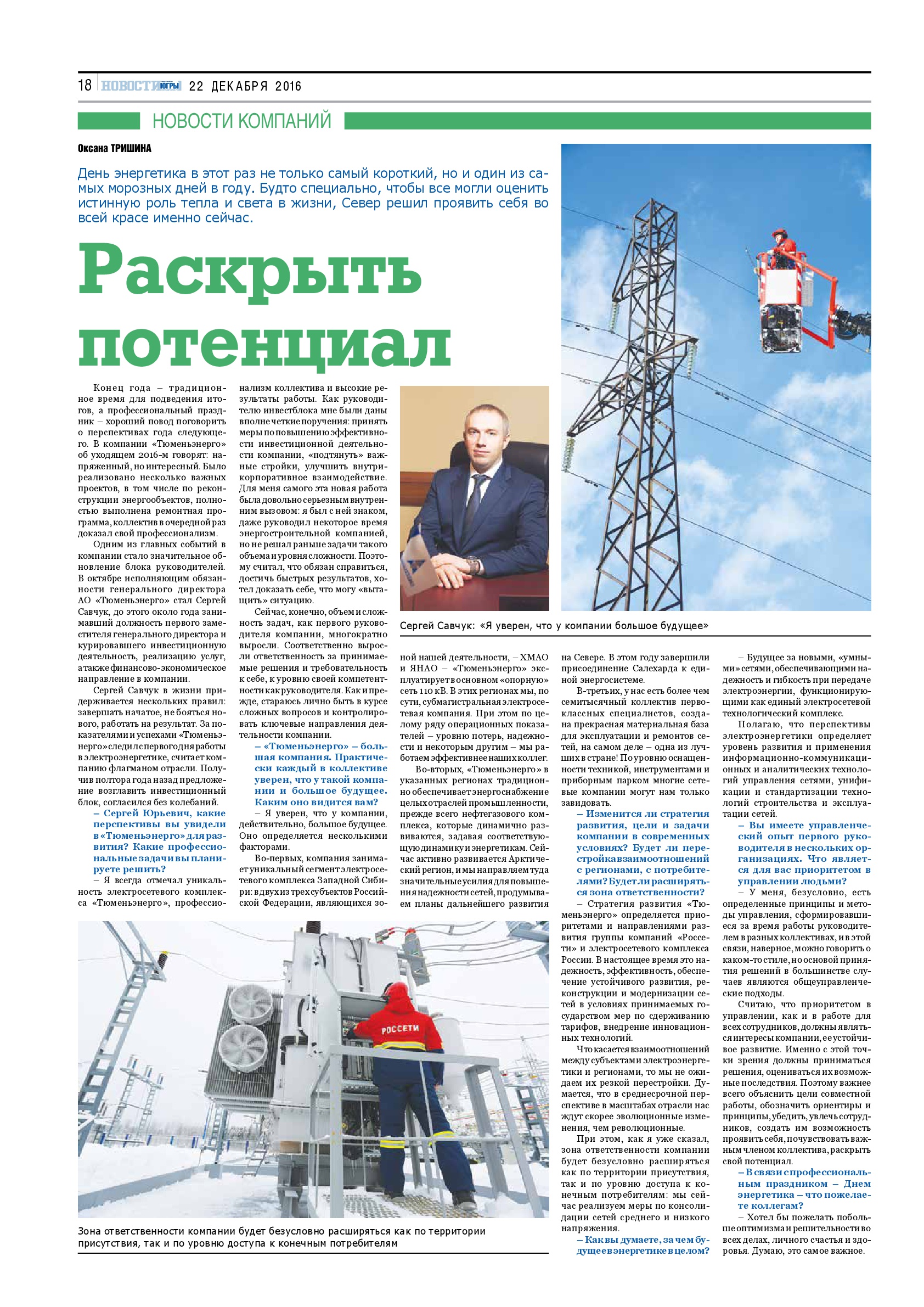 Публикация в издании "Новости-Югры" от 22 декабря 2016 г.