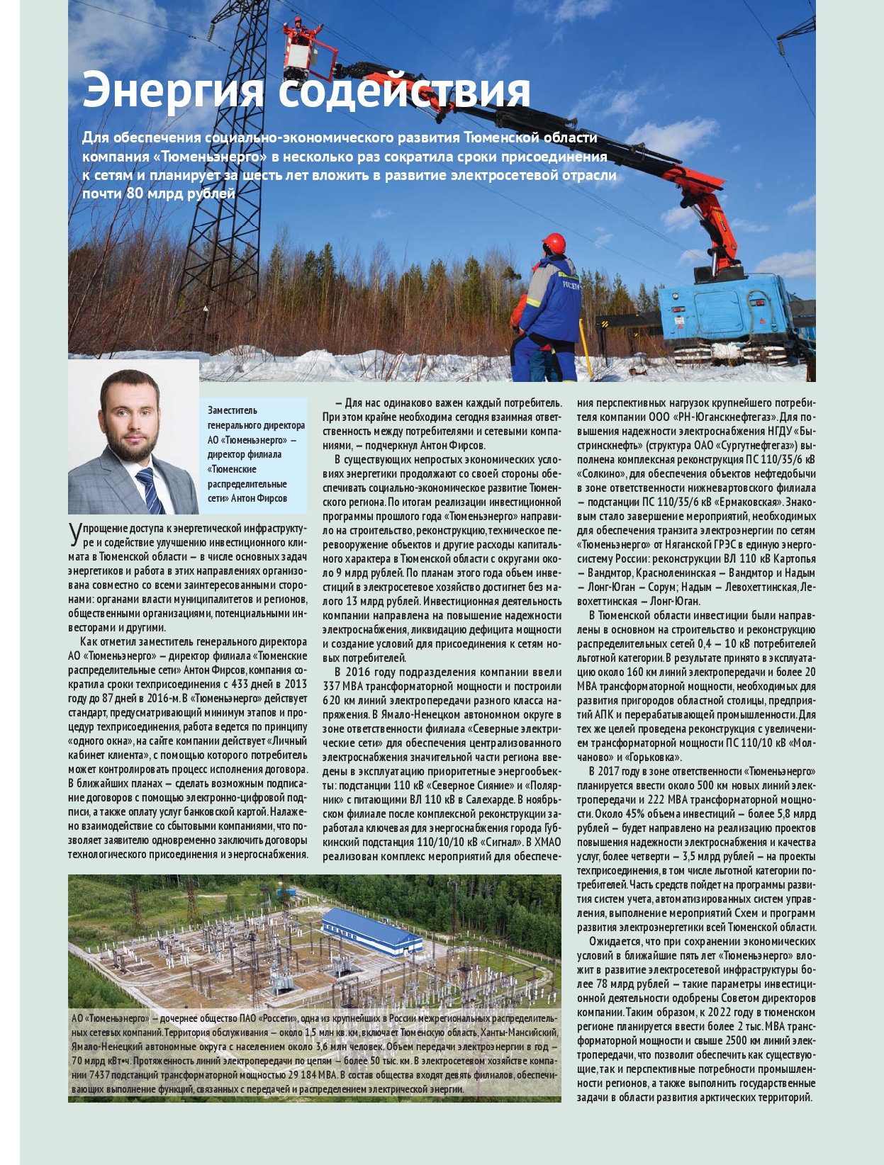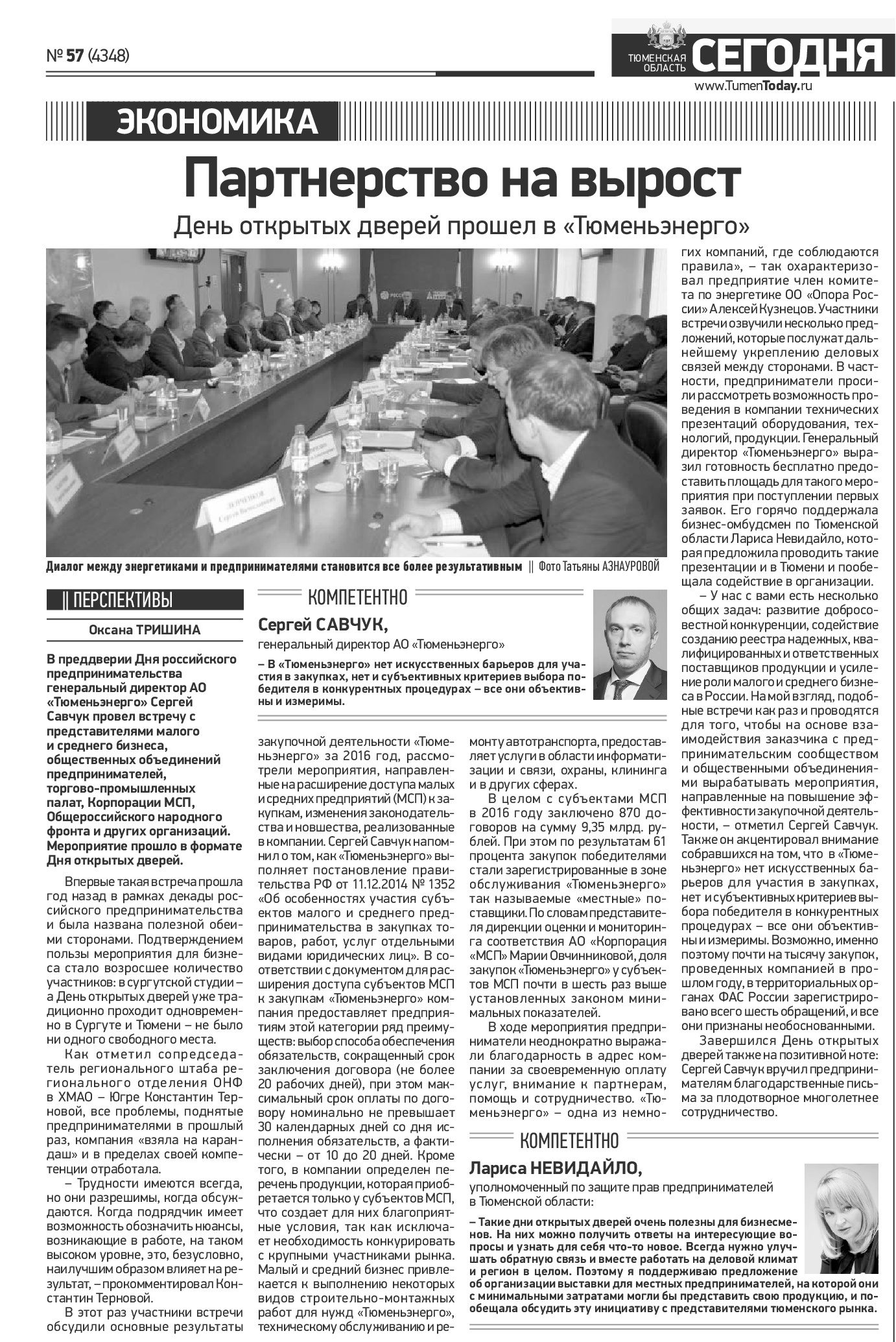 Публикация в издании "Тюменская область сегодня" от 05 апреля 2017 г.
