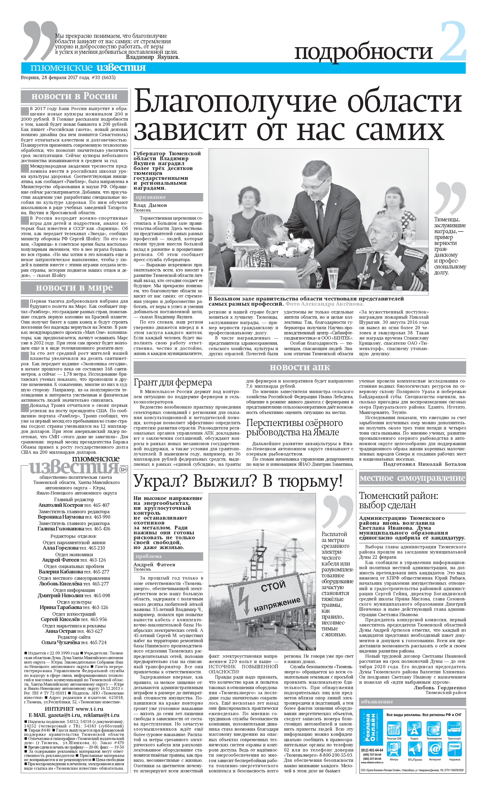 Публикация в издании "Тюменские известия" от 28 февраля 2017 г.