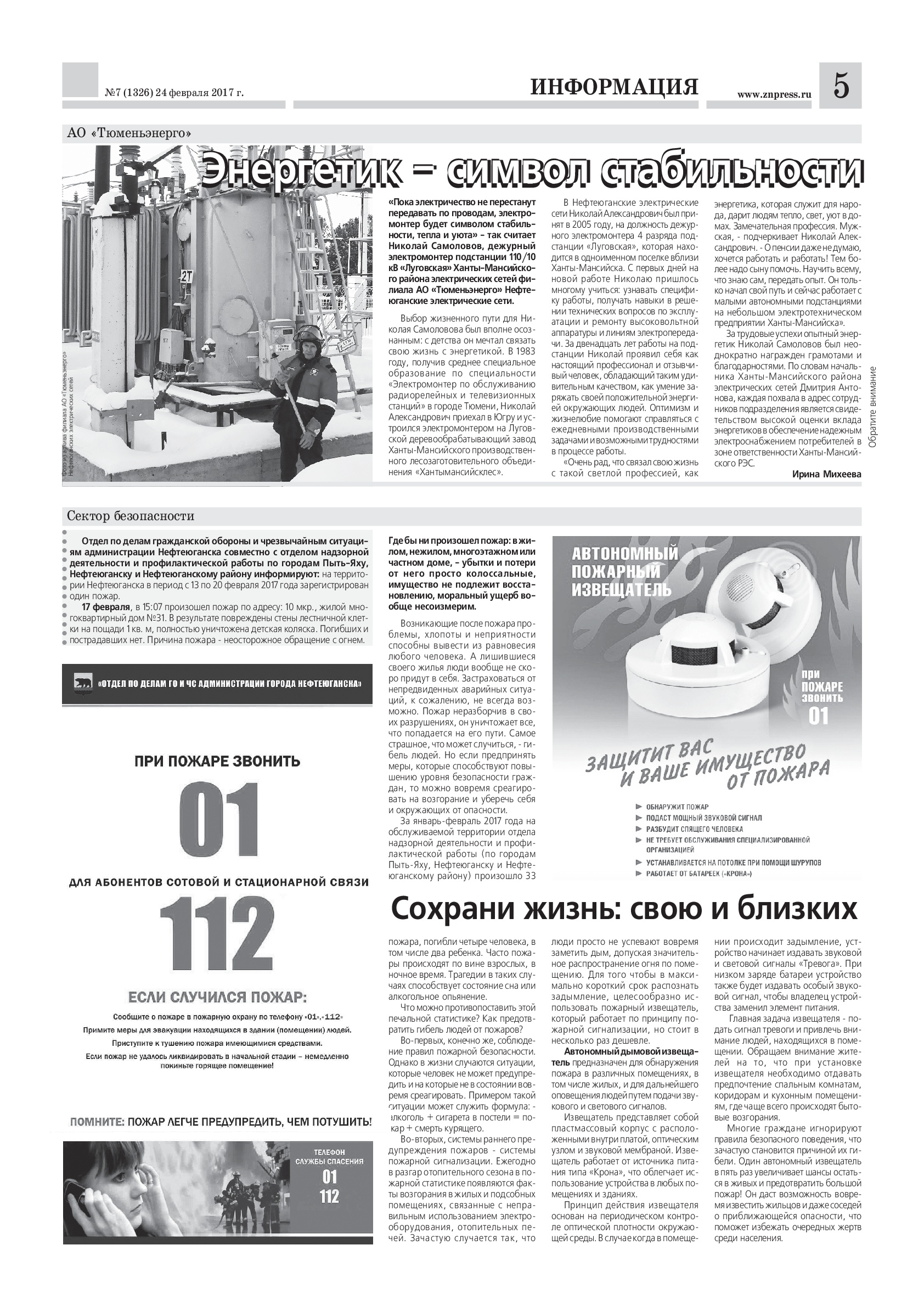 Публикация в издании "Здравствуйте, Нефтеюганцы!" от 24 февраля 2017 г.