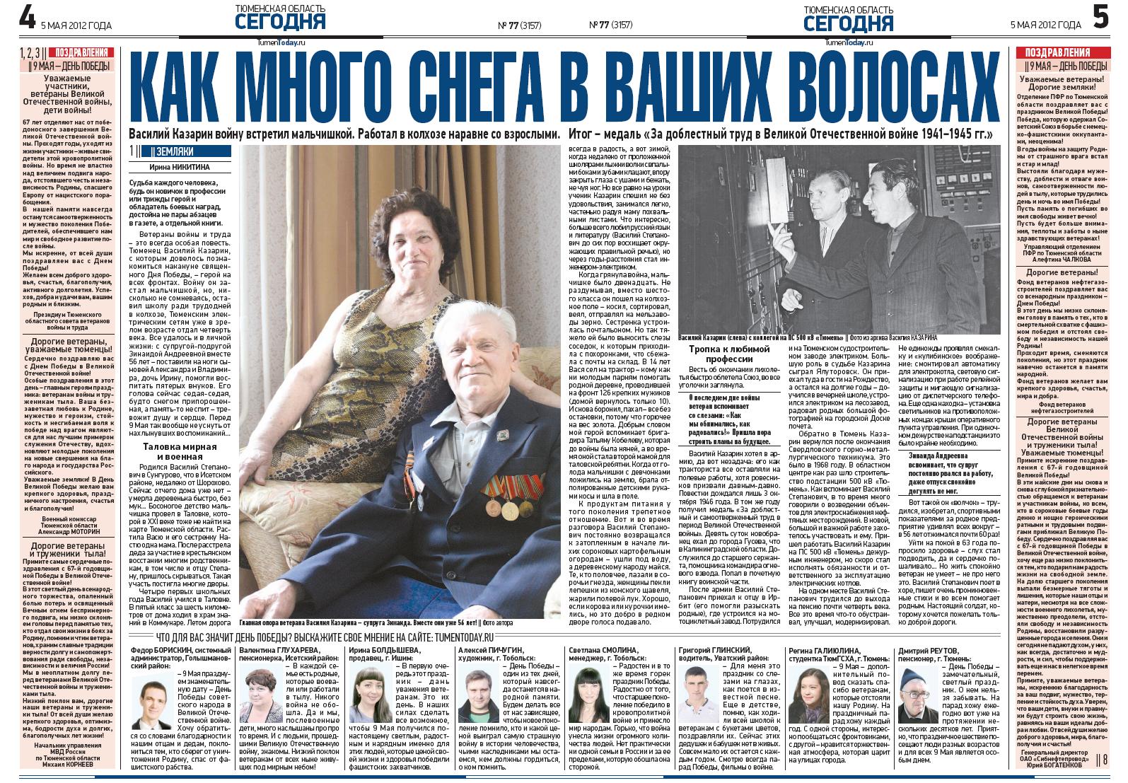 Публикация в издании "Тюменская область сегодня" от 5 мая 2012 г.