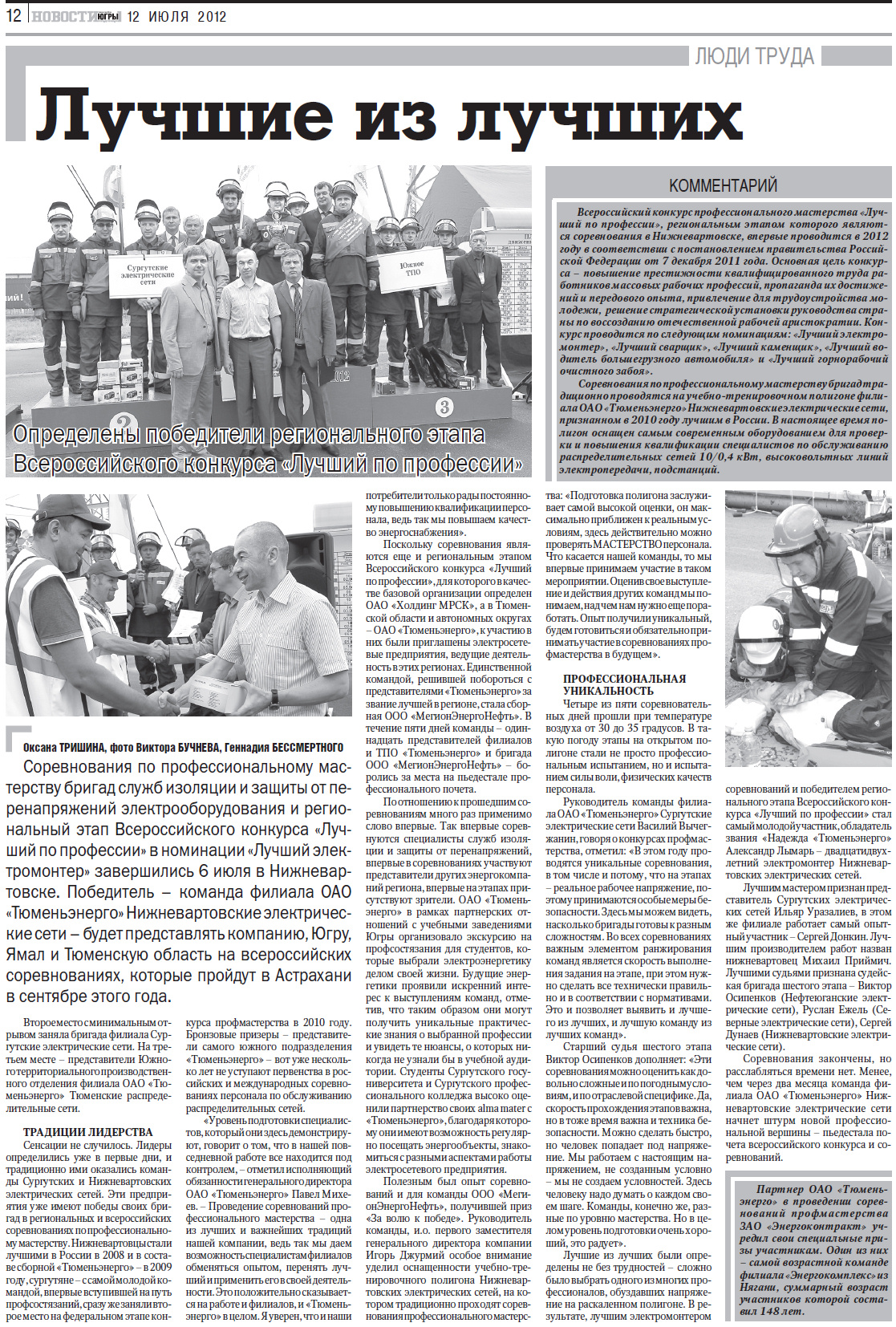 Публикация в издании "Новости Югры" от 12 июля 2012 г.