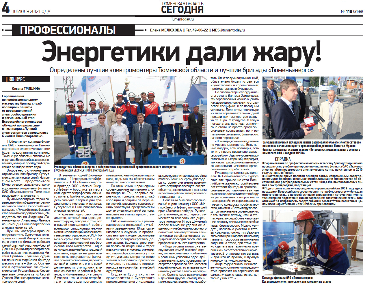 Публикация в издании "Тюменская область сегодня" от 10 июля 2012 г.