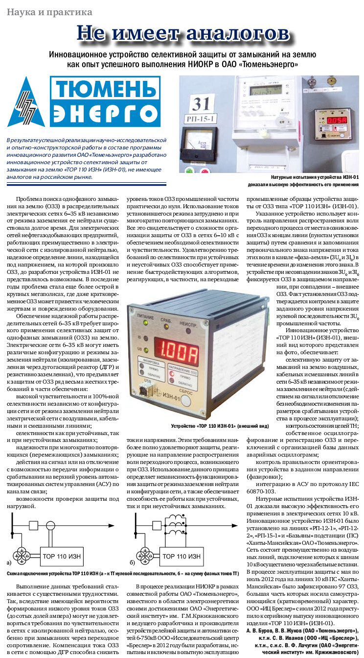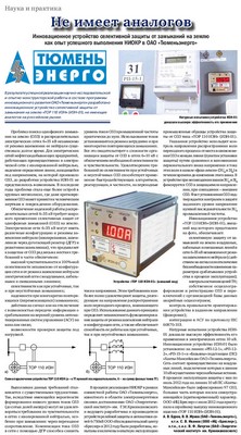 Публикация в издании "Электроэнергия, передача и распределение" №2 2012 г.