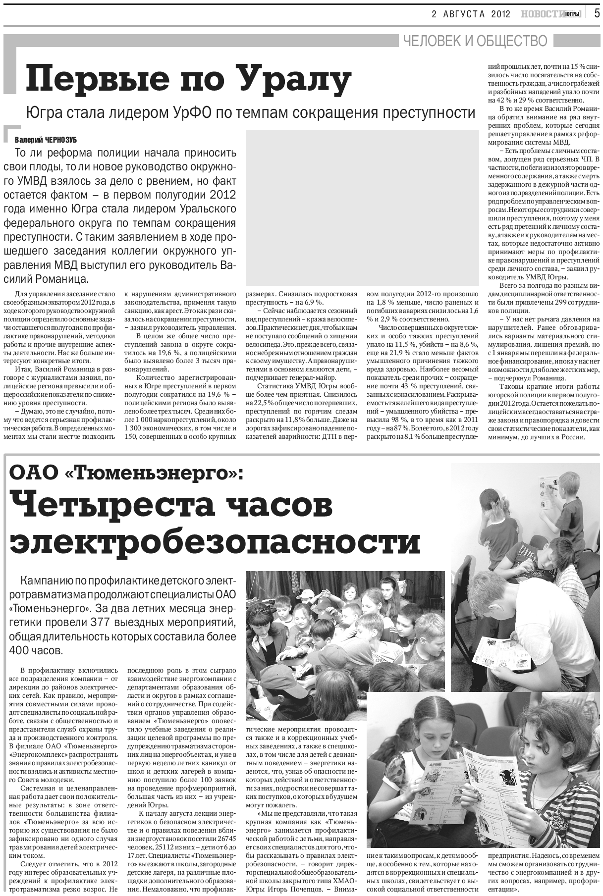 Публикация в издании "Новости Югры" от 2 августа 2012 г.