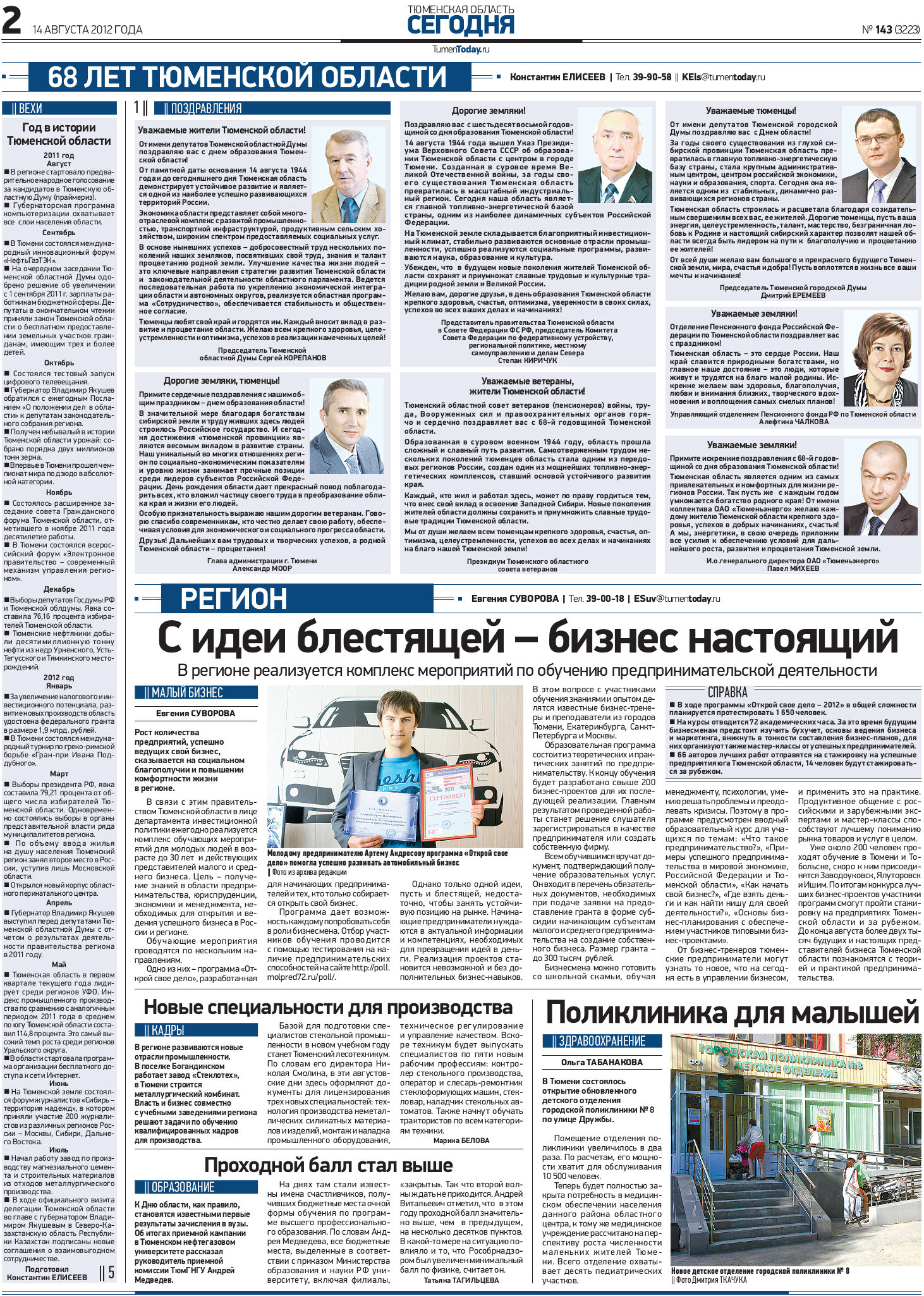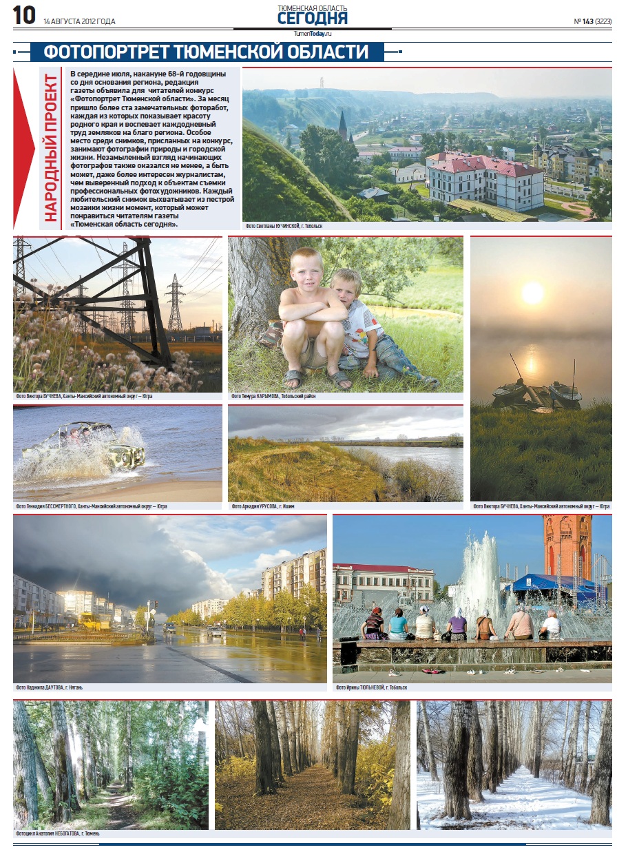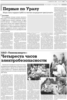 Публикация в издании "Тюменская область сегодня" от 14 августа 2012 г.