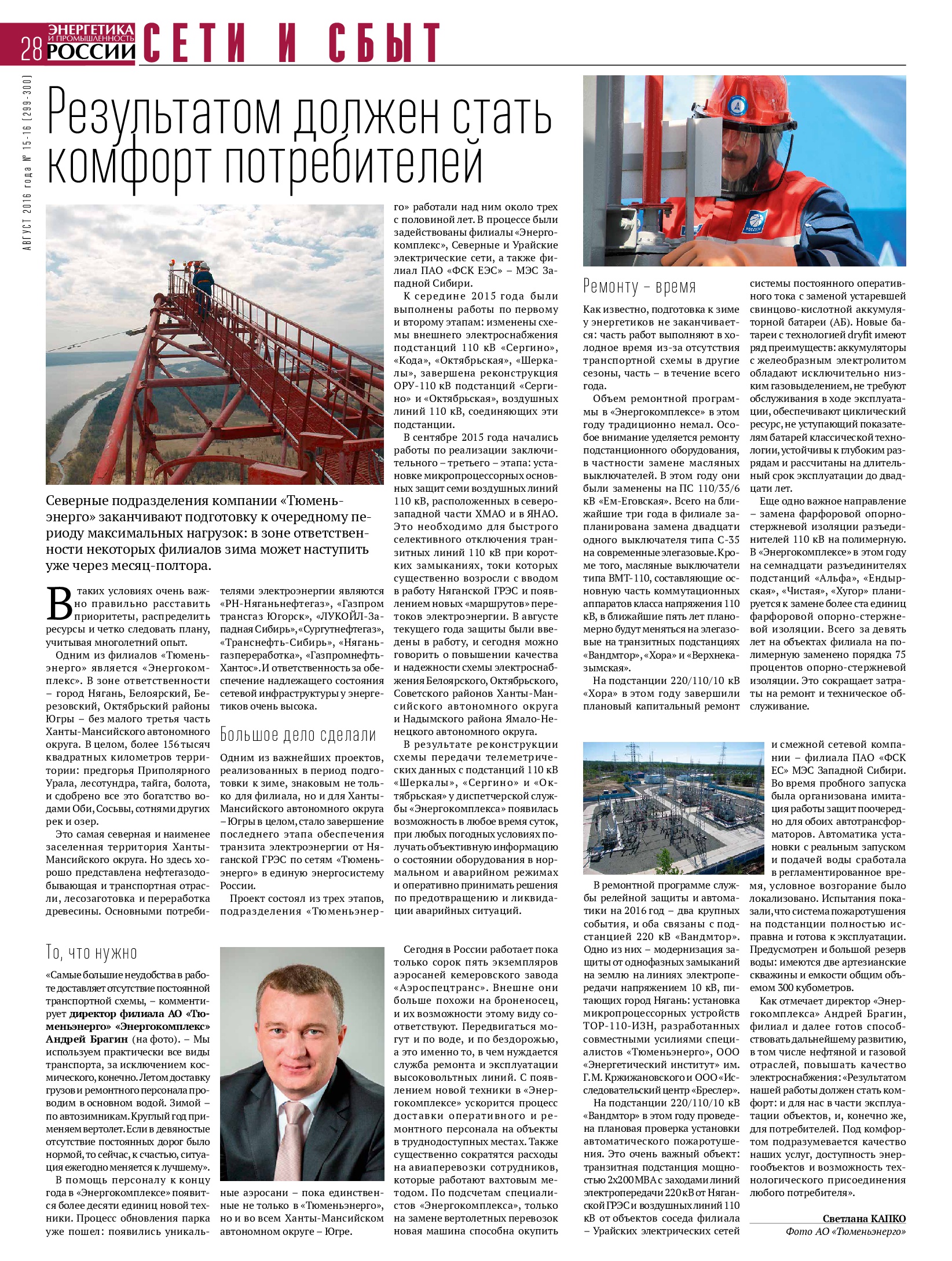 Публикация в издании "Энергетика и Промышленность России " от 25 августа 2016 г.