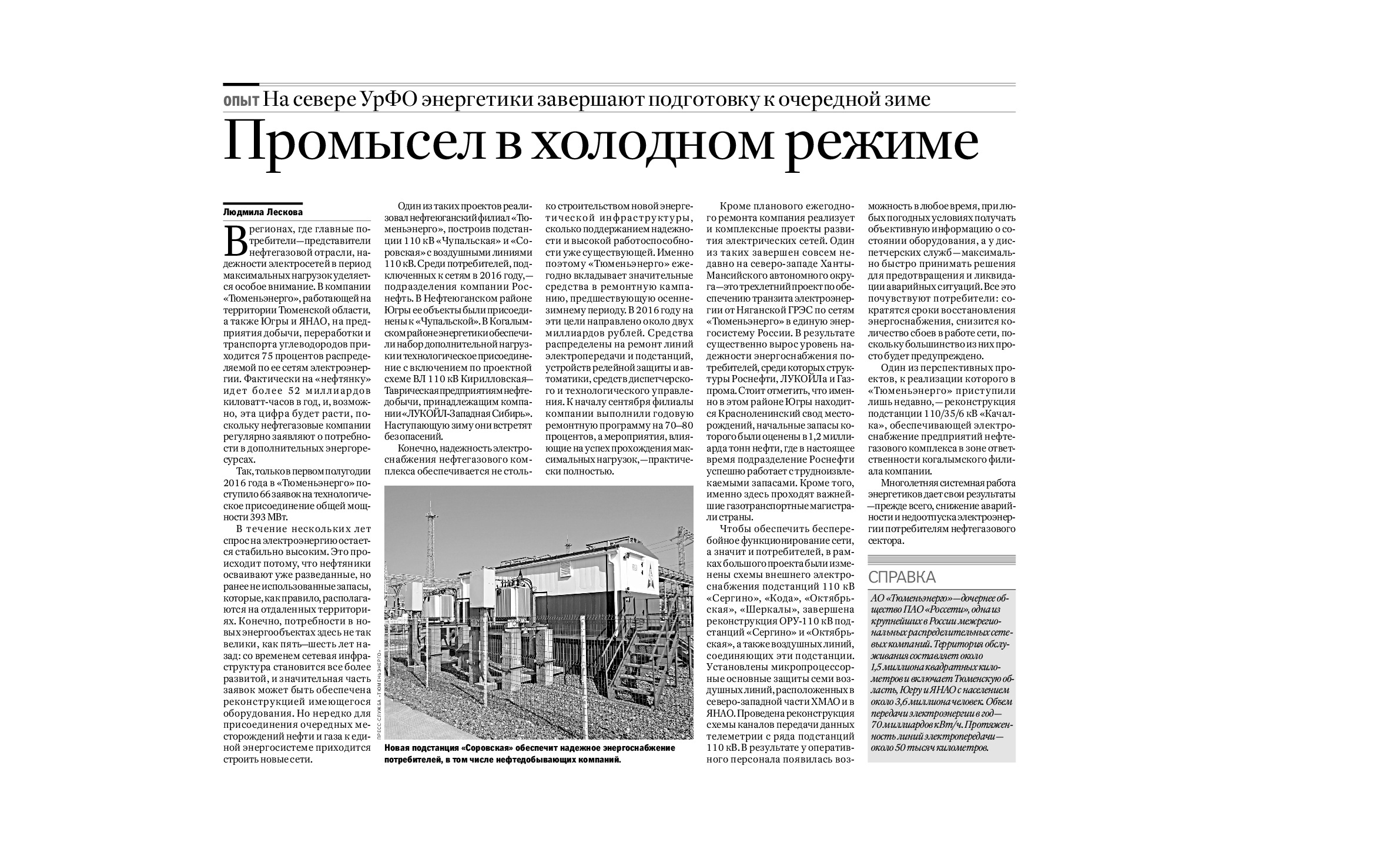 Развивая энергосистему Севера