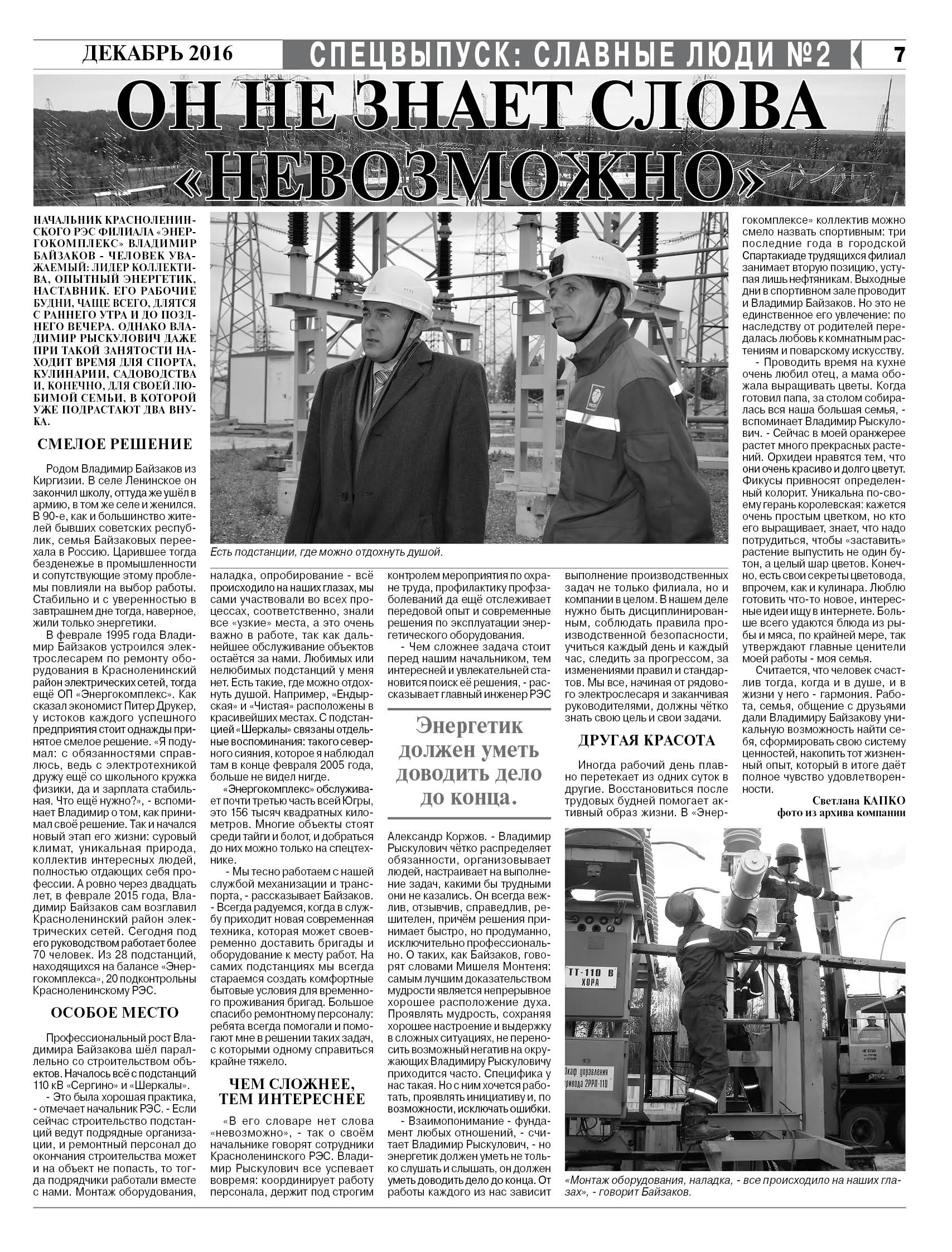 Публикация в издании "Энергетика и Промышленность России " от 19 декабря 2016 г.