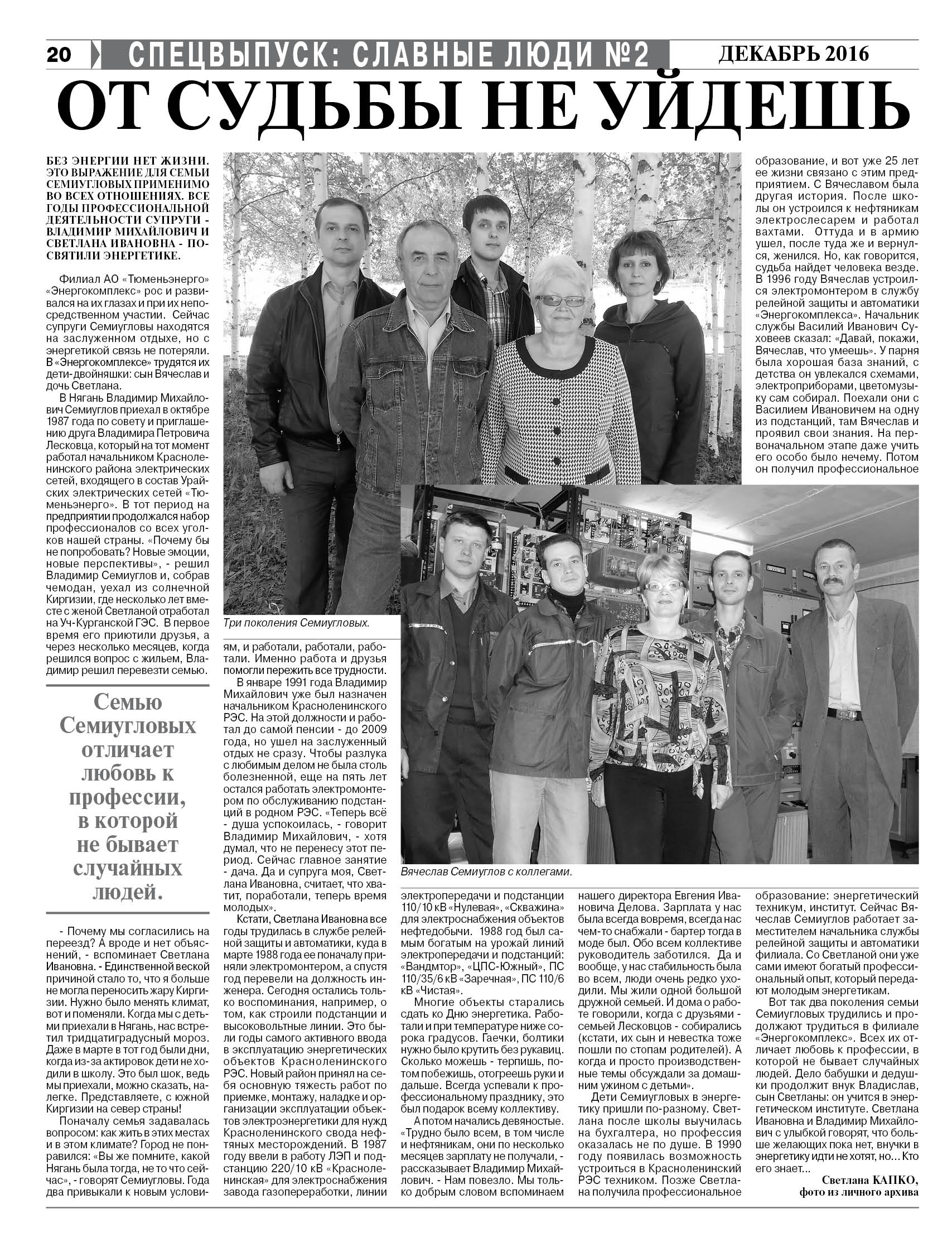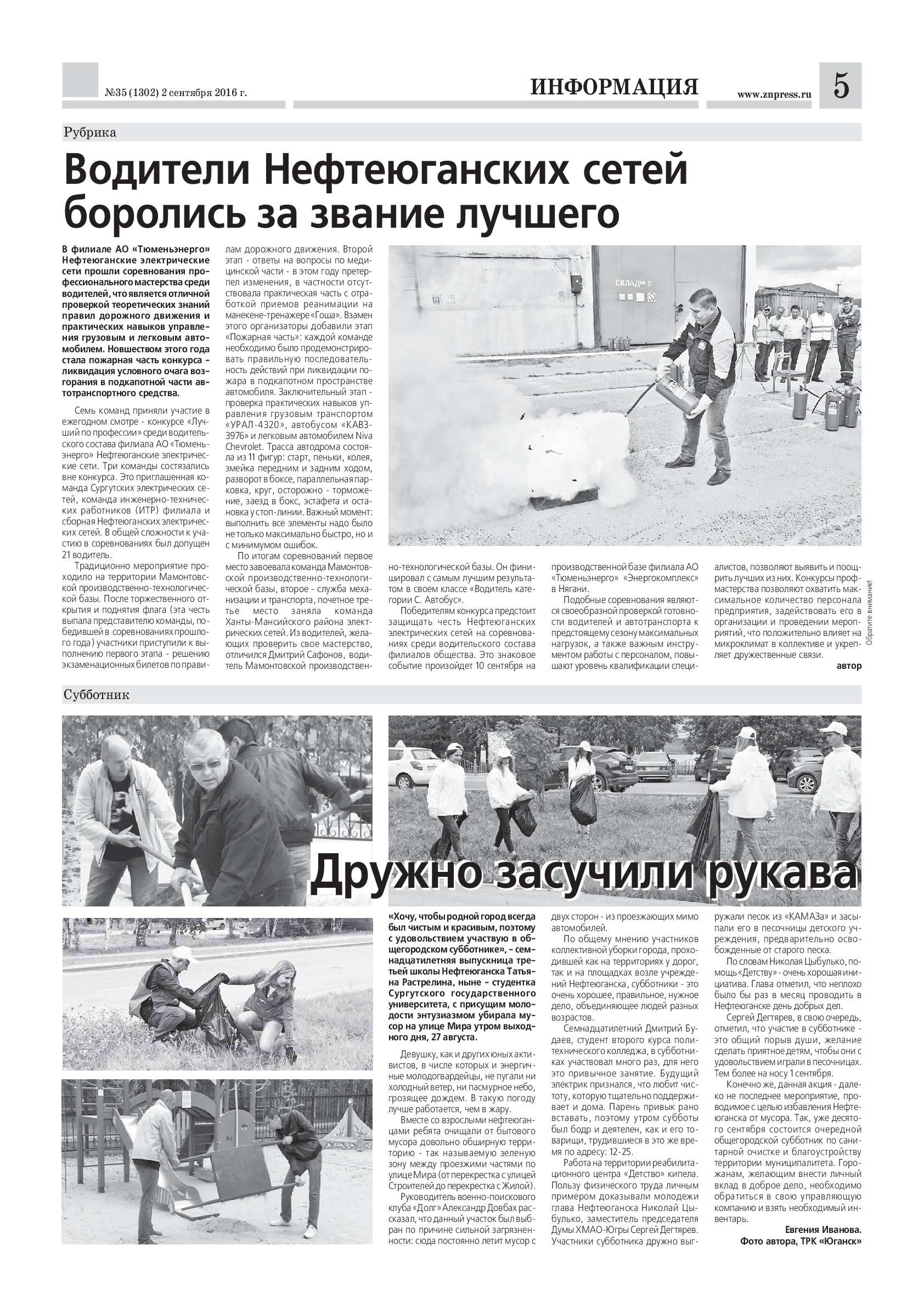 Публикация в издании "Здравствуйте, Нефтеюганцы!" от 02 сентября 2016 г.