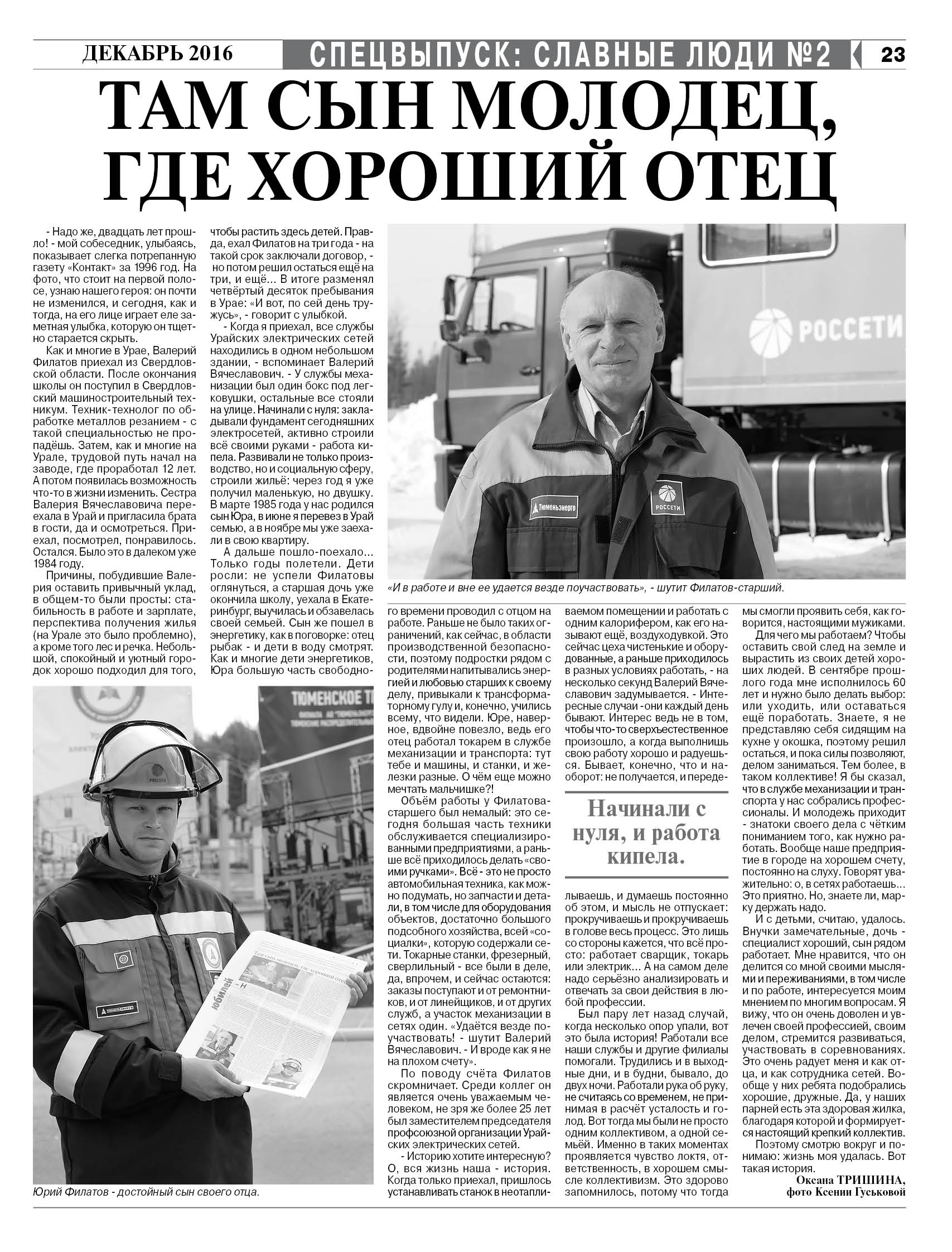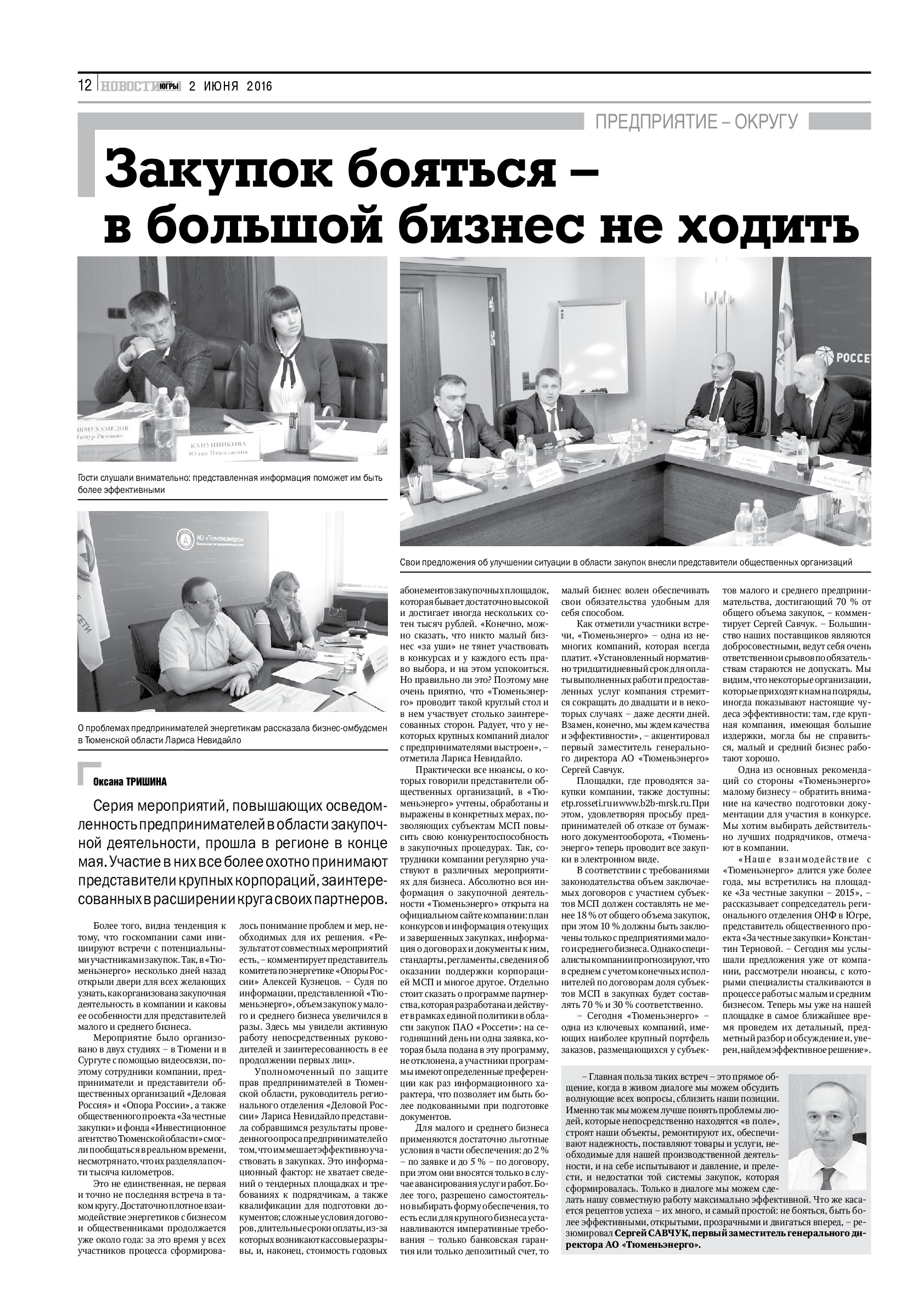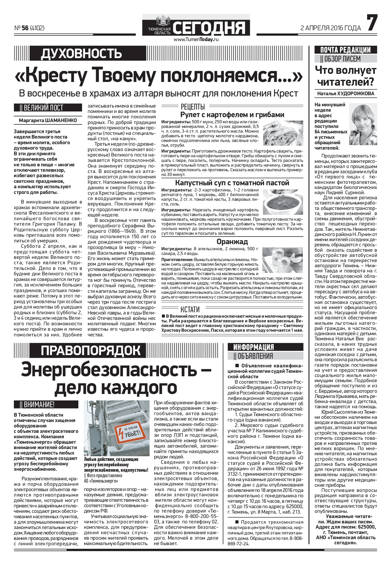 Публикация в издании "Тюменская область сегодня" от 02 апреля 2016 г.