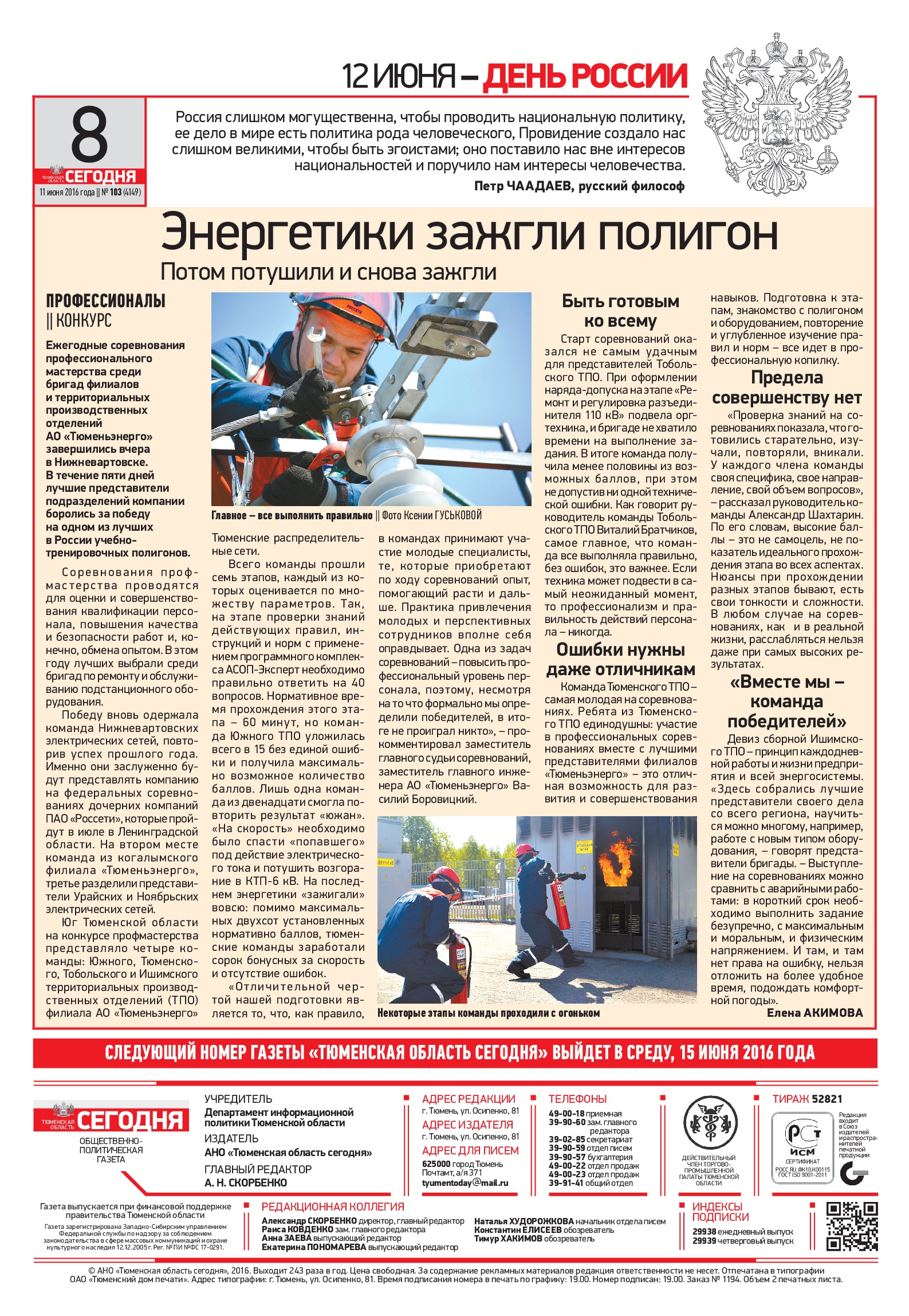 Публикация в издании "Тюменская область сегодня" от 11 июня 2016 г.