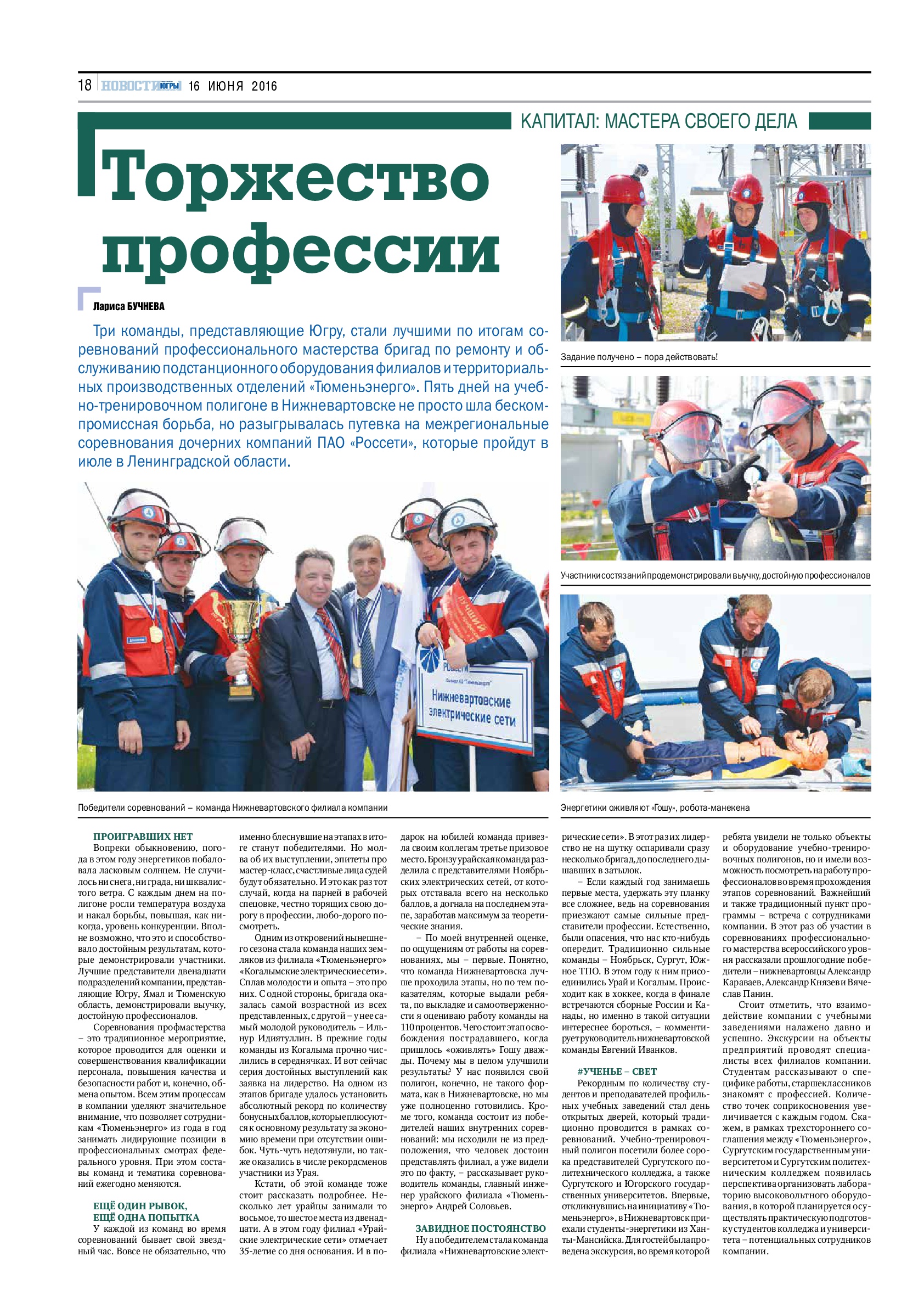 Публикация в издании "Новости-Югры от 16 июня 2016 г.