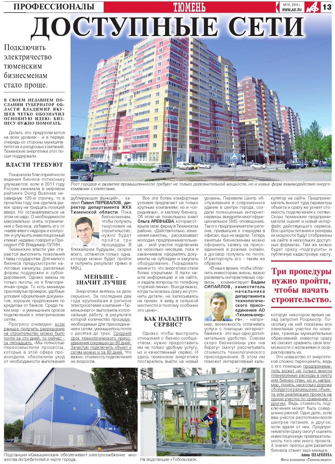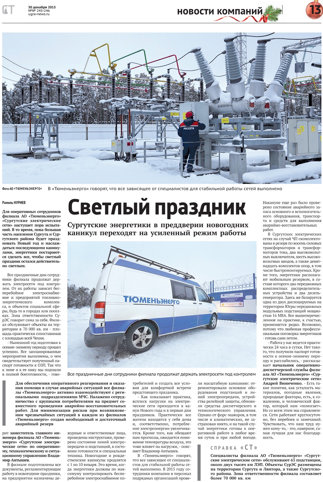 Публикация в издании "Тюменские известия" от 22 декабря 2015 г.