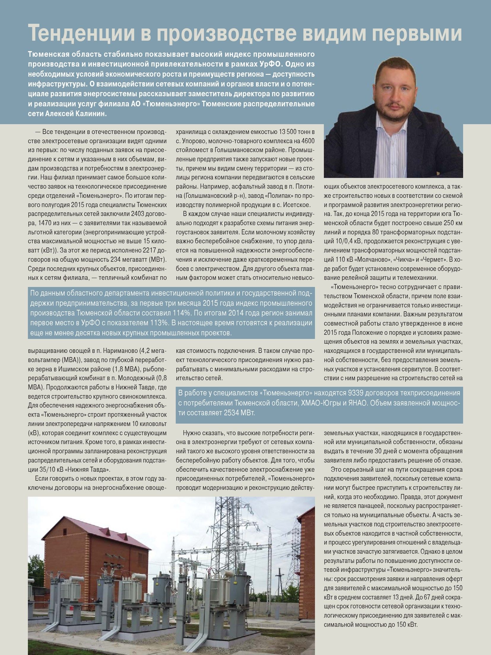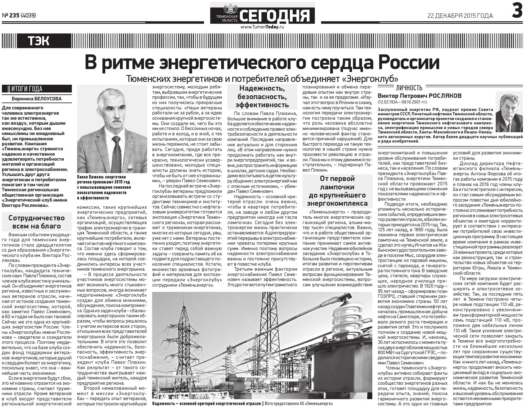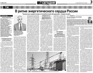 Публикация в издании "Тюменская область сегодня" от 22 декабря 2015 г.