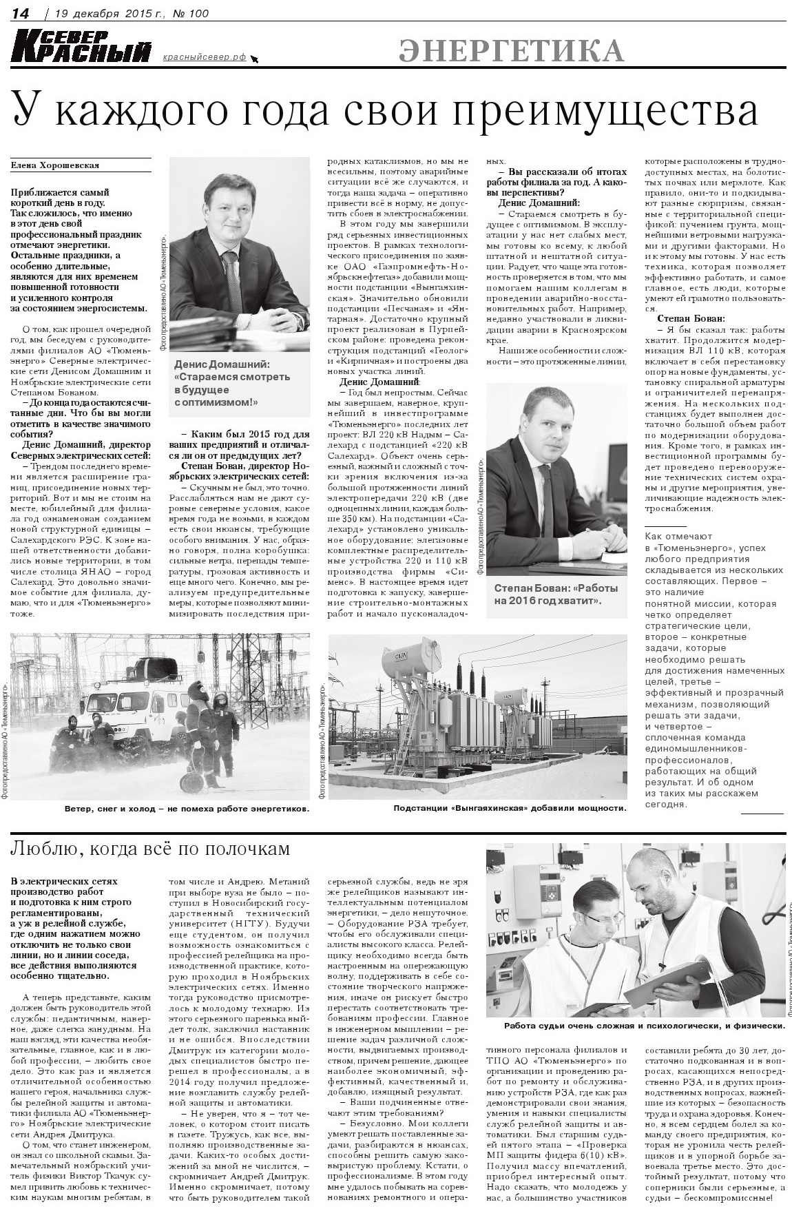 Публикация в издании "Красный Север" от 19 декабря 2015 г.