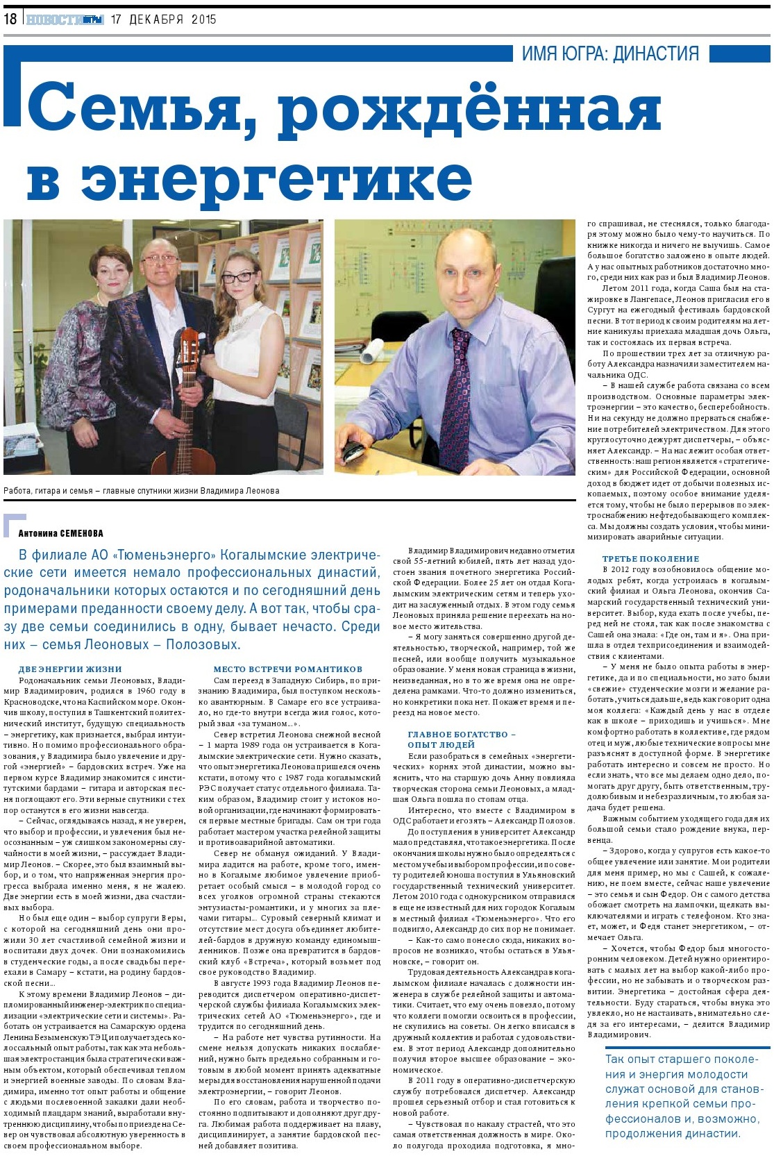 Публикация в издании "Новости Югры" от 17 декабря 2015 г.