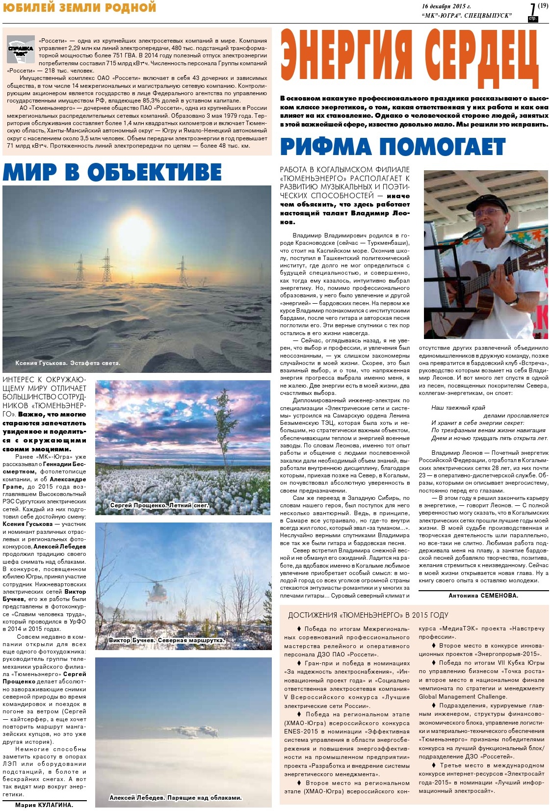 Публикация в издании "МК-Югра" от 16 декабря 2015 г.