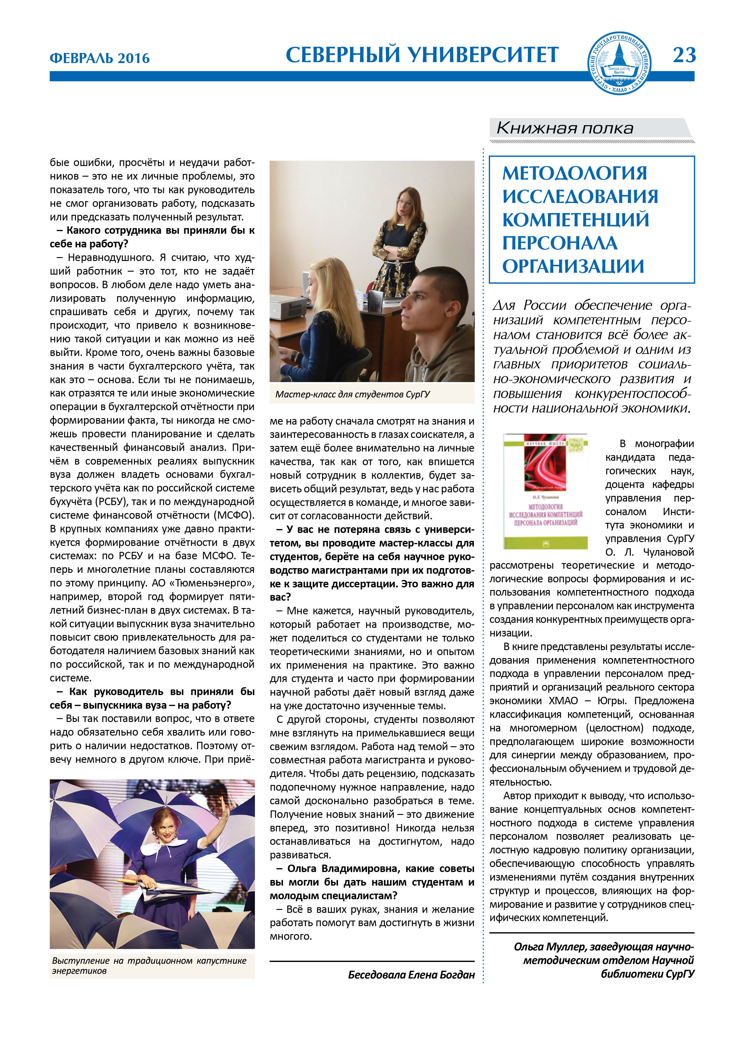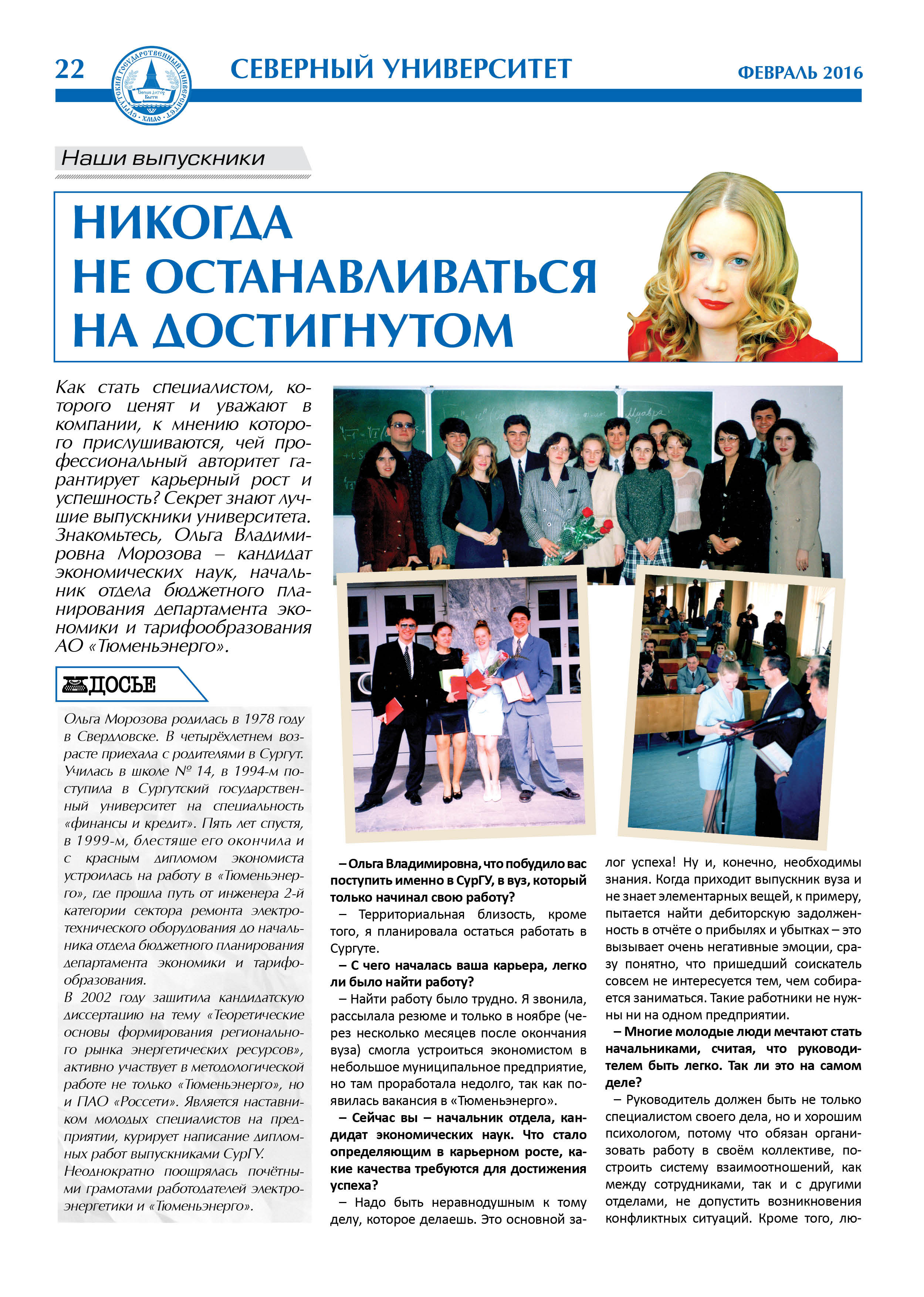 Публикация в издании "Северный Университет" февраль 2016 г.