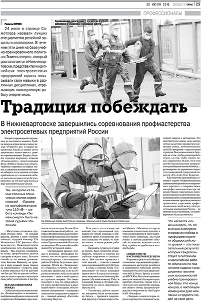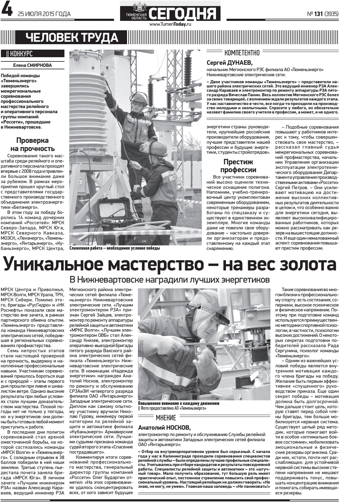 Публикация в издании "Тюменская область сегодня" от 25 июля 2015 г.