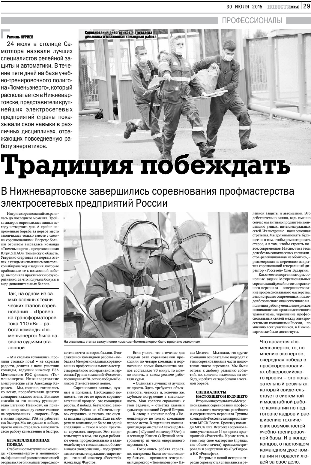 Публикация в издании "Новости Югры" от 30 июля 2015 г.
