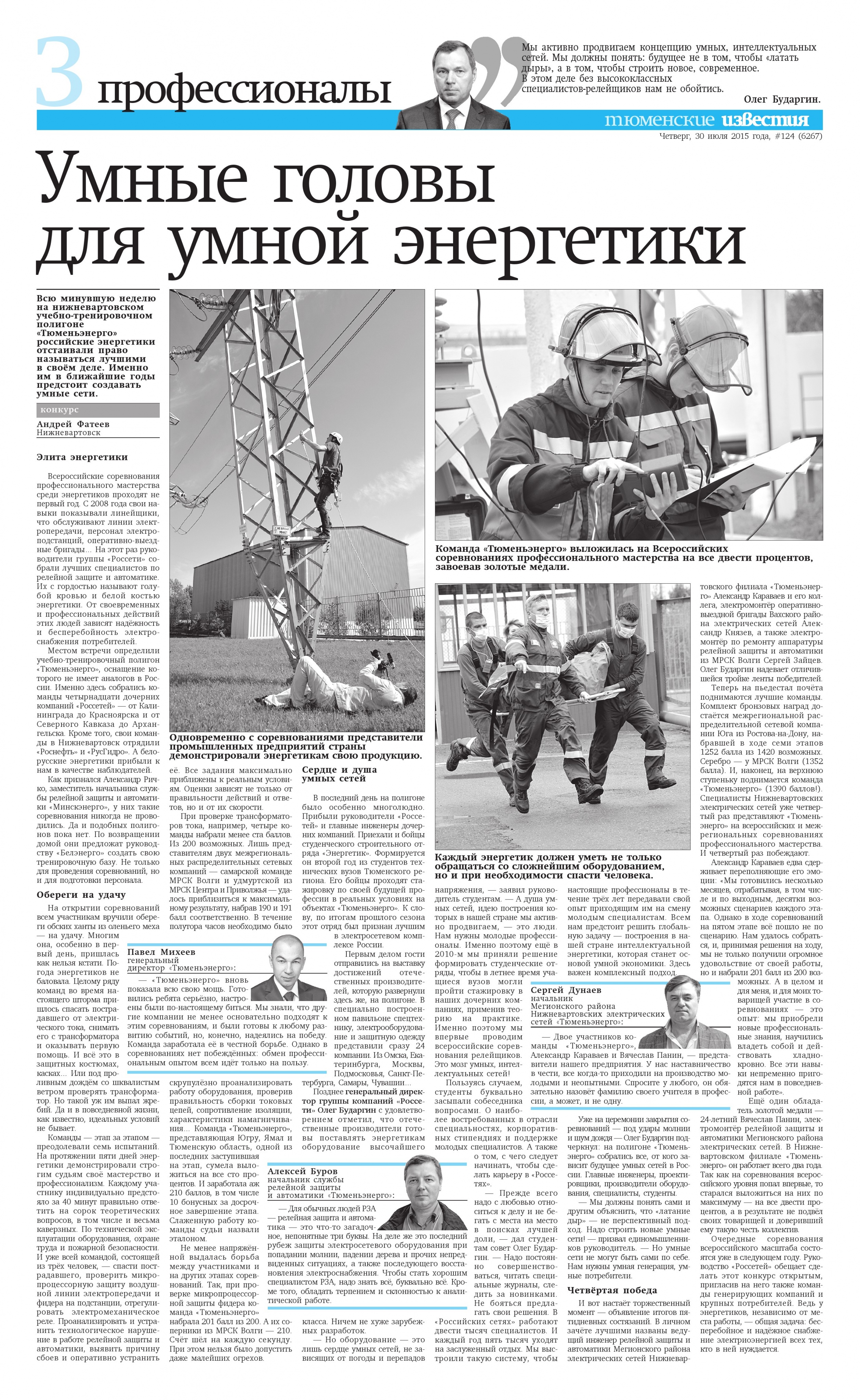 Публикация в издании "Тюменские известия" от 30 июля 2015 г.