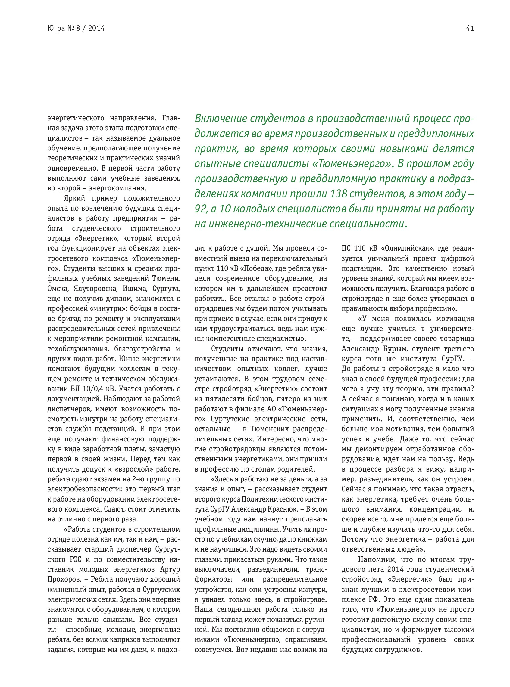 Публикация в издании "Тюменская область сегодня" от 21 июля 2015 г.