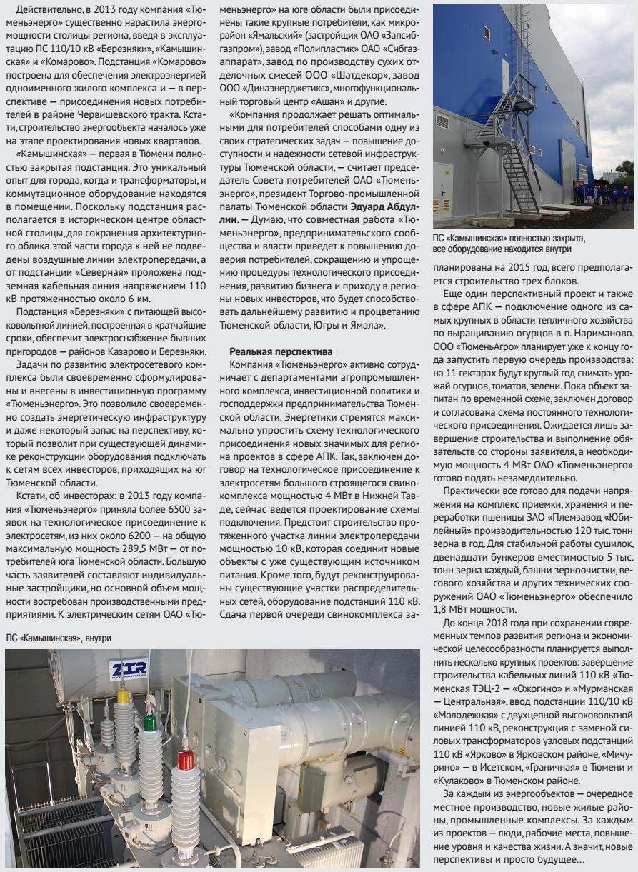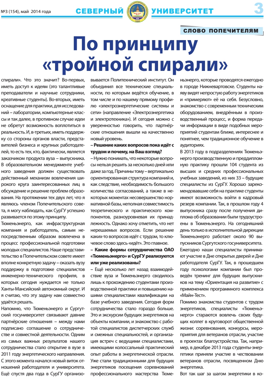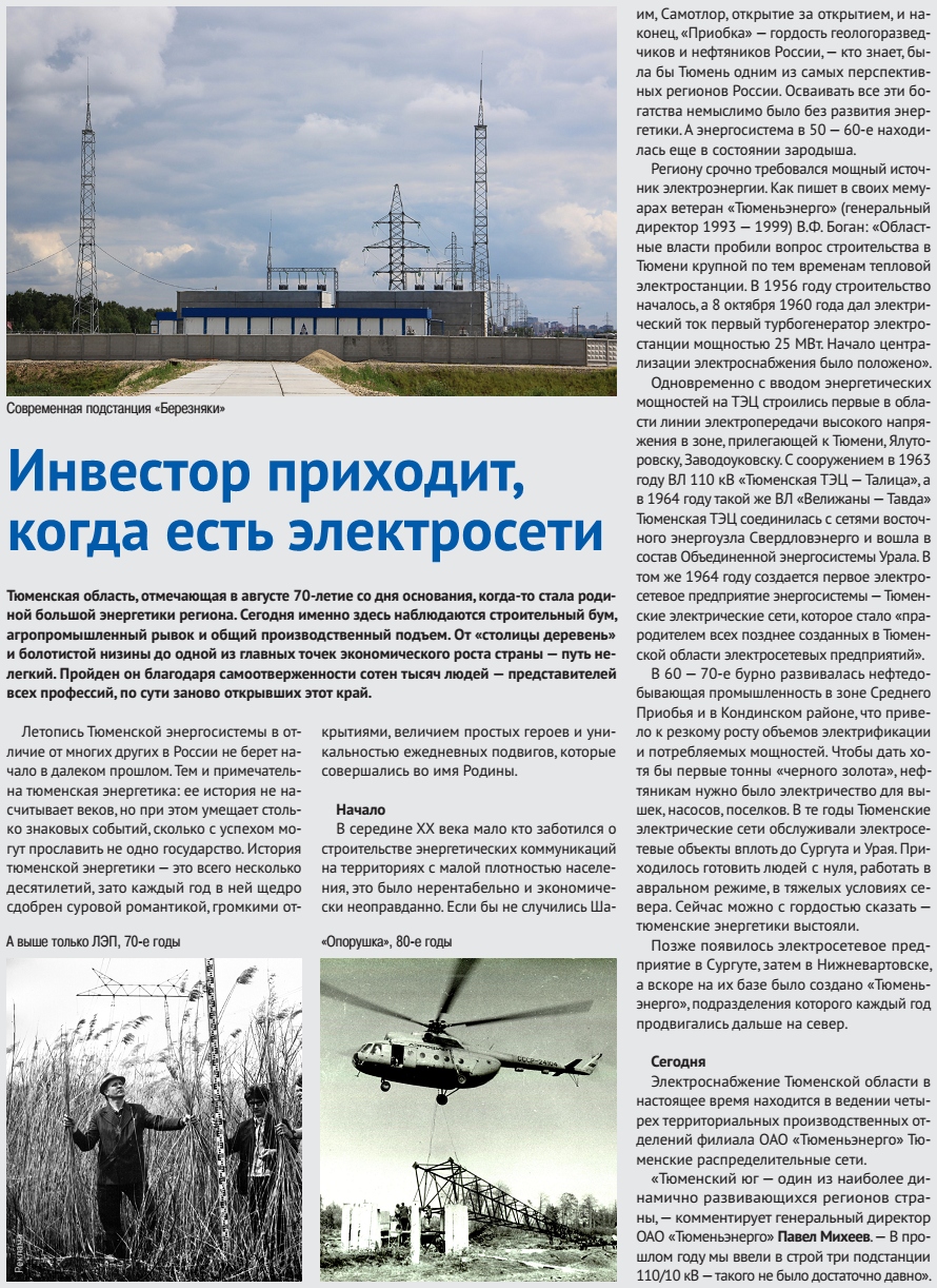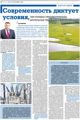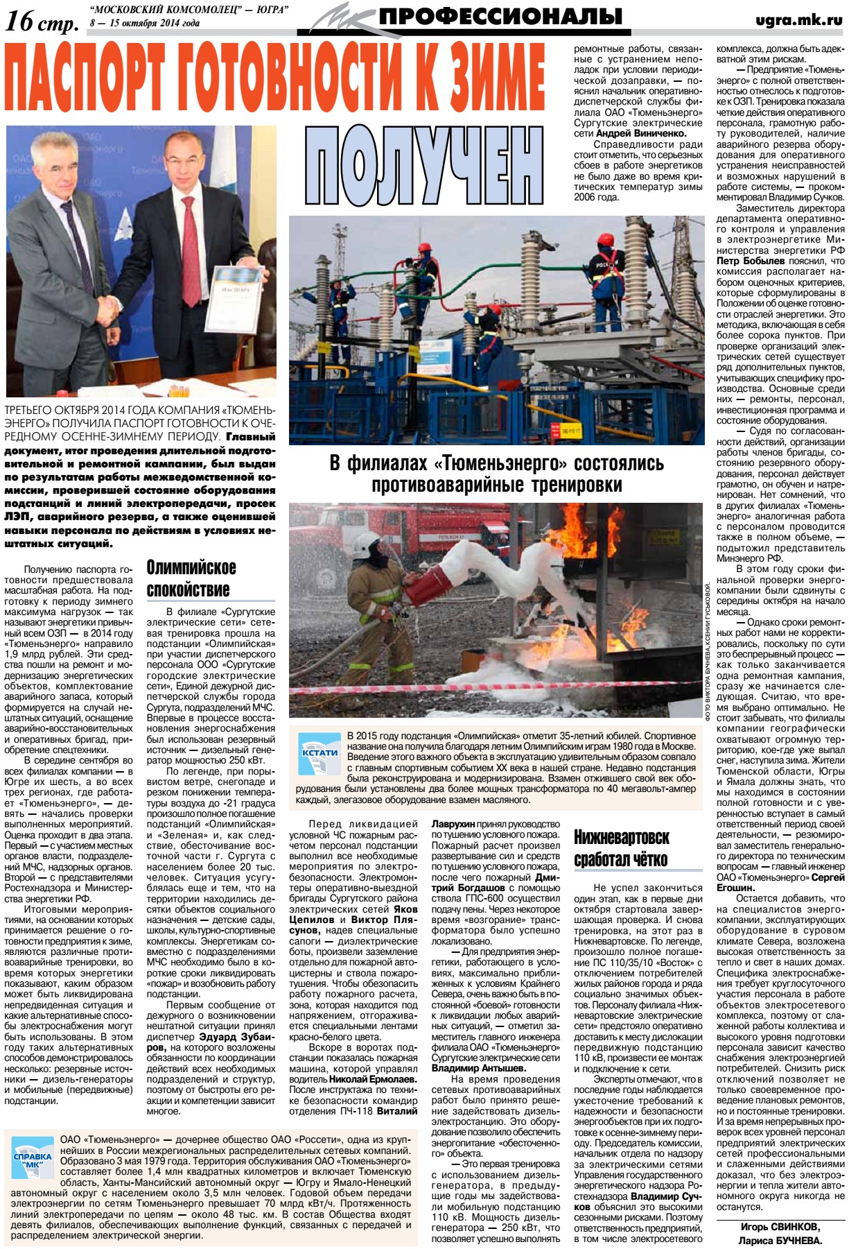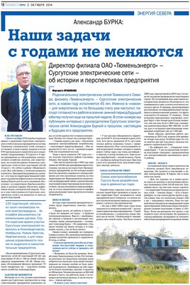 Публикация в издании "Энергия Севера" от 2 октября 2014 г.