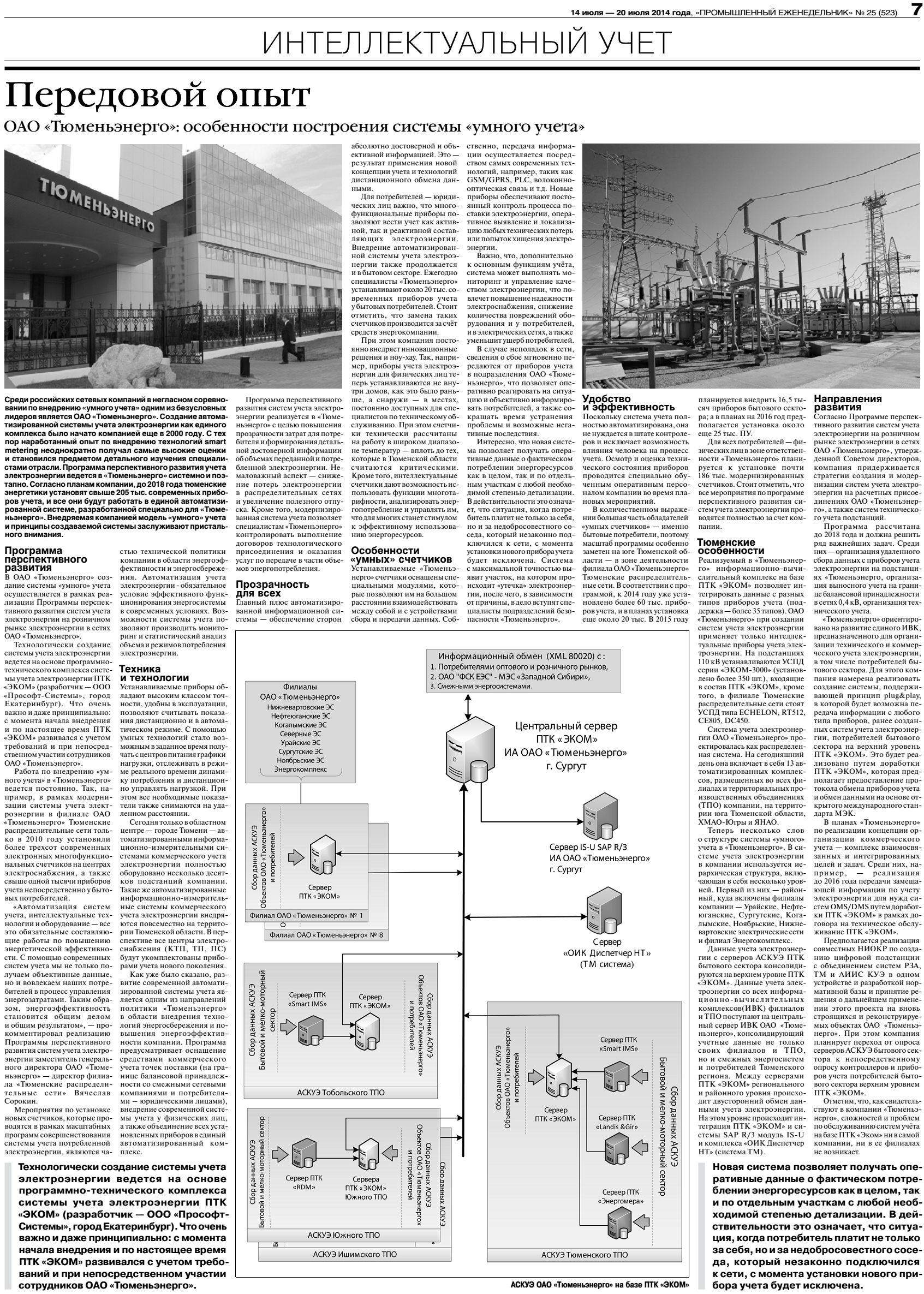 Публикация в издании "Промышленный еженедельник" №25 от 14 июля 2014 г.