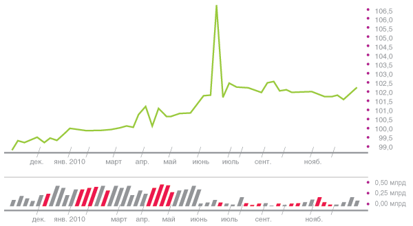 | 2,7 млрд руб. — сумма облигационного займа. 1 000 руб. — номинал одной облигации. Март 2012 года — срок погашения. | |
