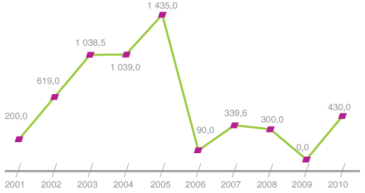 - Распределение прибыли Общества в соответствии с решениями Общего собрания акционеров ОАО «Тюменьэнерго» за период с 2001 по 2010 год включительно:
