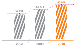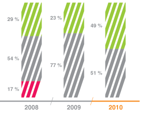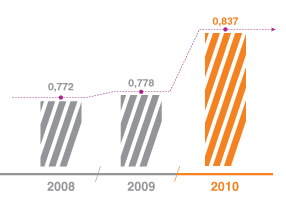 Полученная чистая прибыль в 2010 году (+230 % к 2009 году) обеспечила значительный рост показателя «Покрытие платежей по обслуживанию долгов» (+63,8 % к 2009 году).