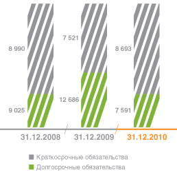 В 2010 году Общество досрочно исполнило свои обязательства по кредитным договорам 2008 года в полном объеме (5 000 млн рублей), а также сократило задолженность по кредиту 2009 года на 1 000 млн рублей.
