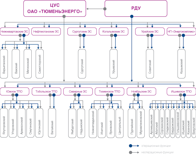 ЦУС «Тюменьэнерго» выполняет неоперационные функции, включающие в себя: