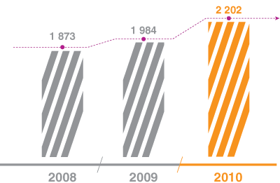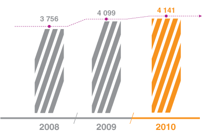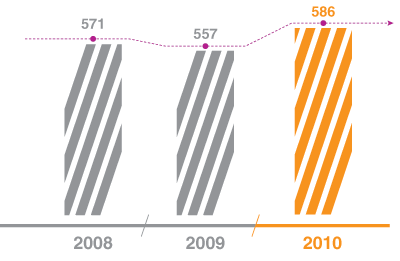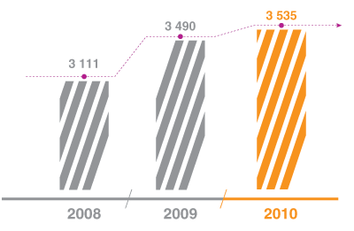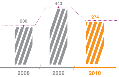 В 2010 году полностью выполнены мероприятия и осуществлено технологическое присоединение по 2 202 договорам общей мощностью 274 440 МВт. Прирост количества по отношению к 2009 году составил 11 %. Присоединенная мощность снизилась на 38,1 %.