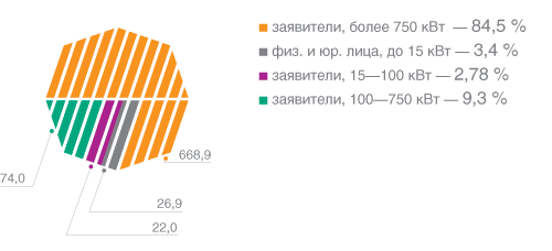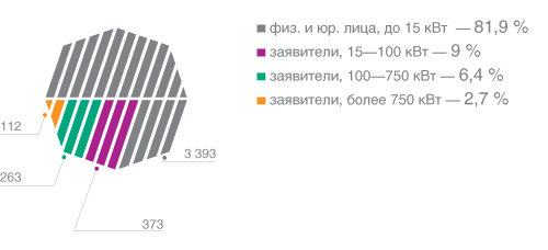 | 4 141 заявка на технологическое присоединение суммарной мощностью 791,824 МВт принята В 2010 году. | |