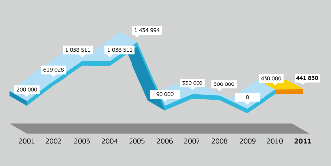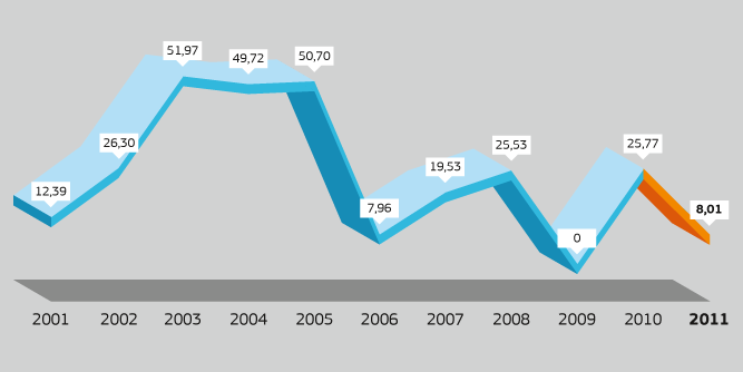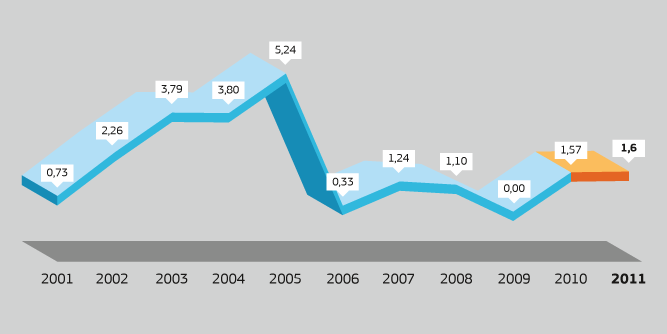 Выплата дивидендов за 2010 год составила 8,01 % от суммы чистой прибыли.