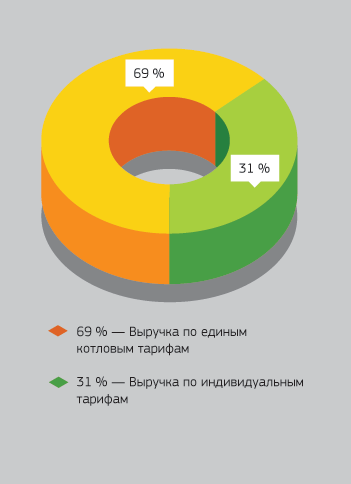 структура выручки по единым (котловым) и индивидуальным тарифам, %