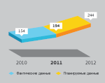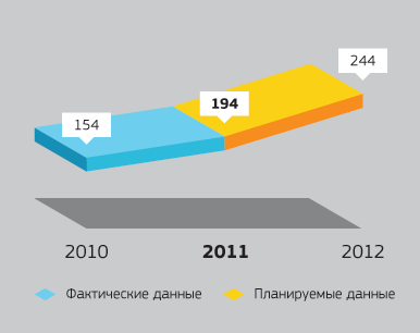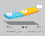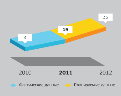 В течение 2011 года проведены работы по переводу 19 вспомогательных информационных систем в виртуальную среду. В результате перевода без снижения производительности систем уменьшено потребление ресурсов ЦОД (охлаждения, электроэнергии, физического пространства в помещениях ЦОД). Все оборудование виртуальной инфраструктуры обеспечено гарантией производителей, что также повышает надежность информационных систем, ранее использовавших устаревшие серверы, снятые с производства. Фактическое и планируемое к переводу в 2012 году на виртуальные платформы количество систем изображено на графике.